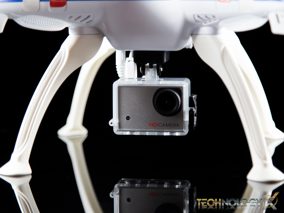 Before you get started you will want to charge the battery to full. The instructions indicate that a full 120 minutes are required for a full charge. We tested this instruction and it was spot on to two hours. You will also need four AA batteries for the controller. Next you can look to installing that HD Camera, it is very simple to install. Just slide it into the grooves on the bottom of the drone and connect the 3.5mm cord into its port.