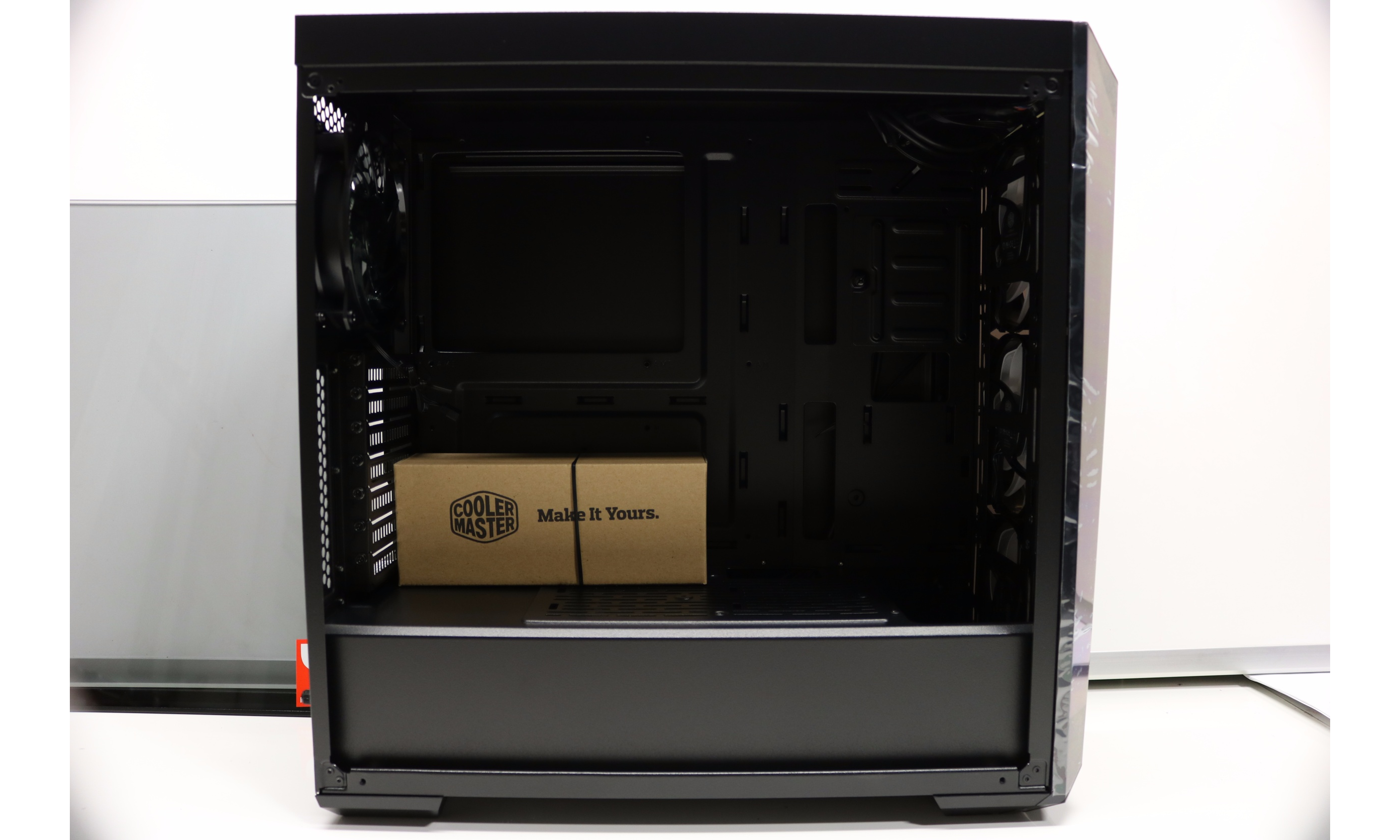 Conveniently Cooler Master has added a removable front panel to allow easy access to the fan intakes.
