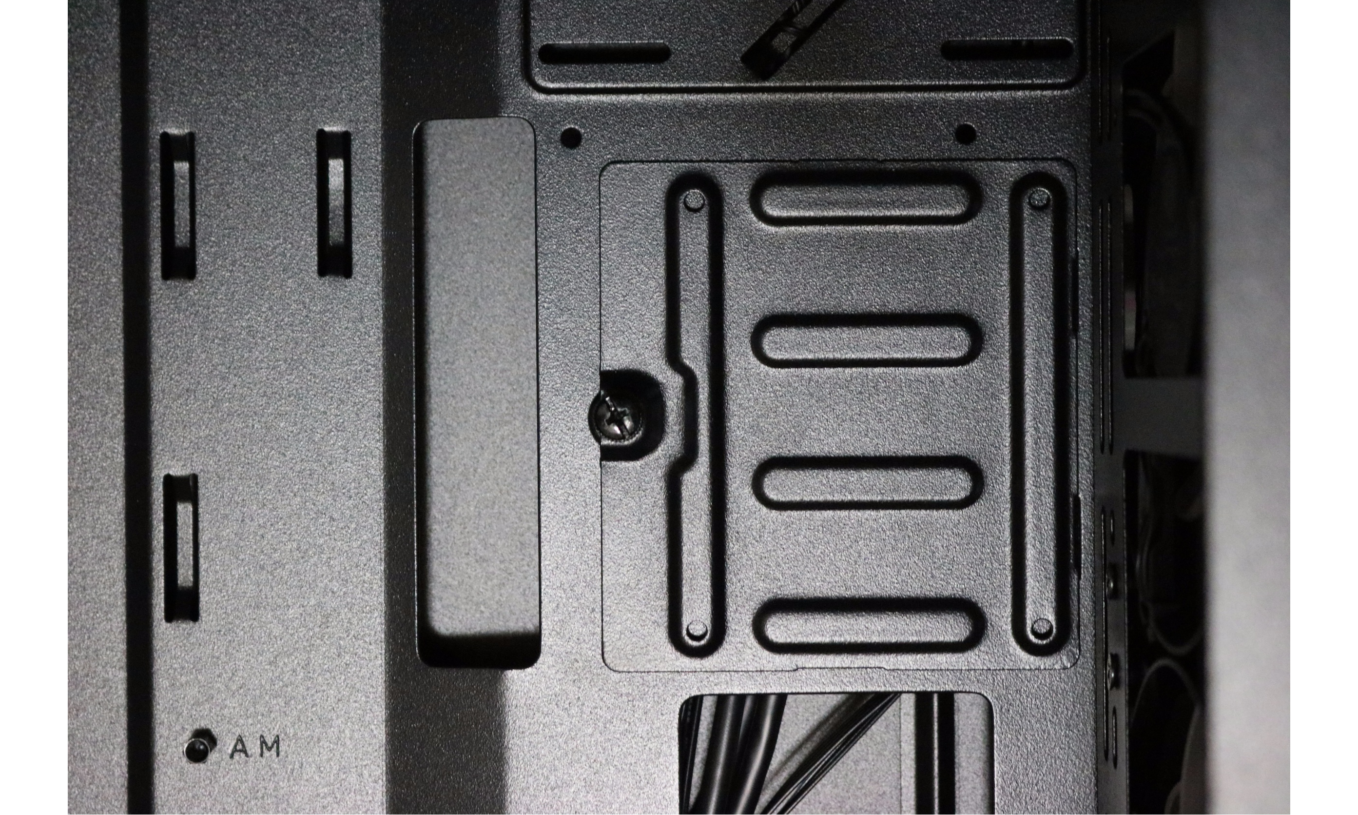 Moving into the guts of this chassis, we notice a very cool 2.5 quick release panel. As easy as attaching four screws and fastening the device into place.