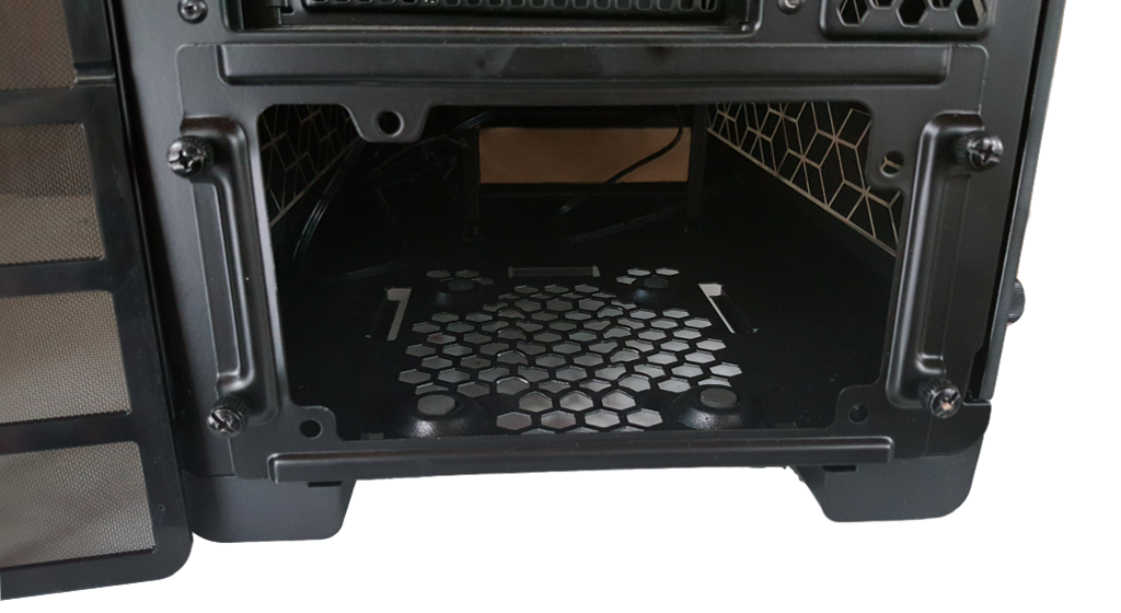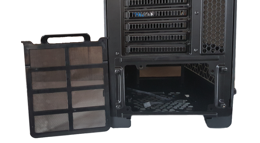 The NEO’s bottom panel is again standard fare, with the power supply dust filter present directly under the power supply area.