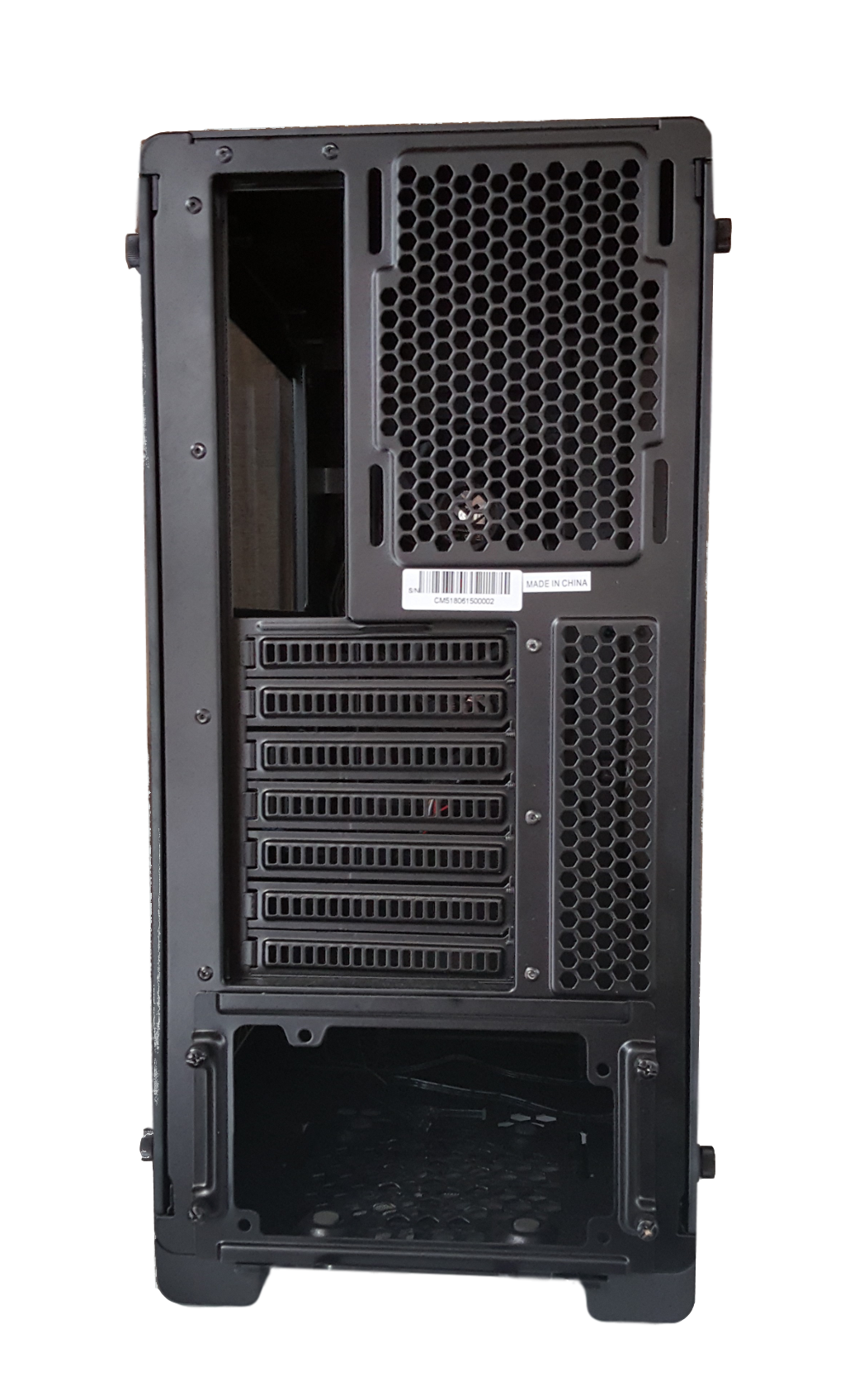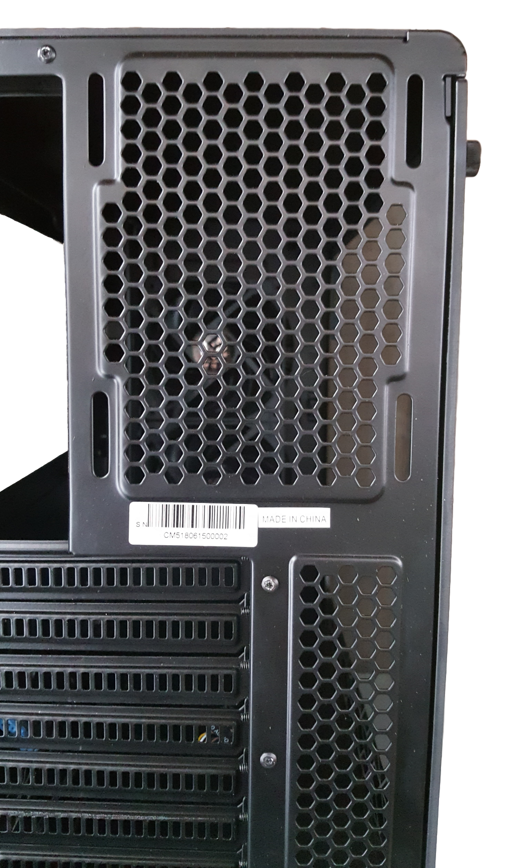 The remaining areas of the rear panel are perforated to improve ventilation, although smaller perforation holes or a finer mesh would likely do a better job of mitigating dust intrusion.