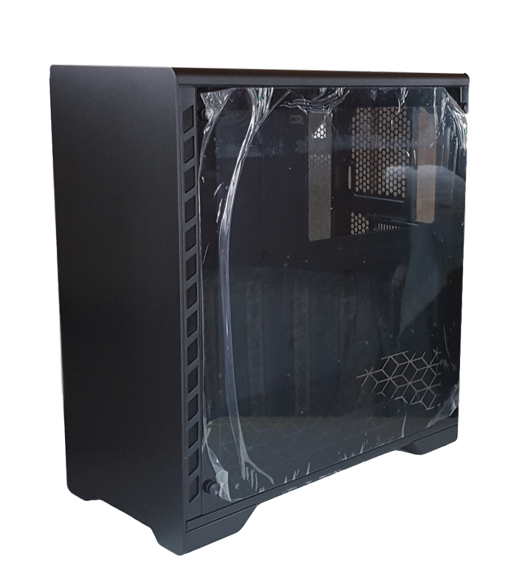 The Metallic Gear NEO’s understated and clean appearance starts with the front panel. It is a one-piece, smooth surface with only a Metallic Gear logo present at the bottom center, which illuminates when the PC is powered on. Both side edges of the front panel include ventilation openings (where front-mounted fans pull air in from) along their entire length, except for the left edge. The upper 1/3 of the left edge incorporates most of the front I/O functions, including 2 x USB 3.0 ports, microphone and headphone jacks, and a reset button (power switch is on the top panel). The front and top panels do tend to readily show fingerprints, so bear in mind that a bit of a cleanup may be necessary after your build is complete.