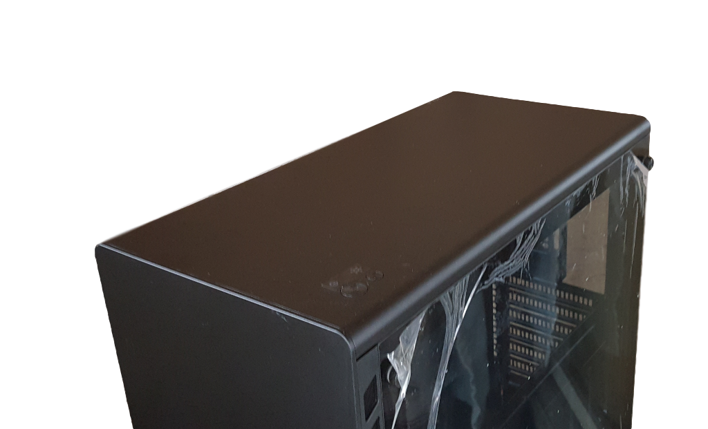 The top panel of the Metallic Gear NEO is not designed to accept ventilation fans or liquid cooling in this area. It has a one-piece solid panel with softened edges that curve downward to mesh smoothly with the tempered glass side panels.