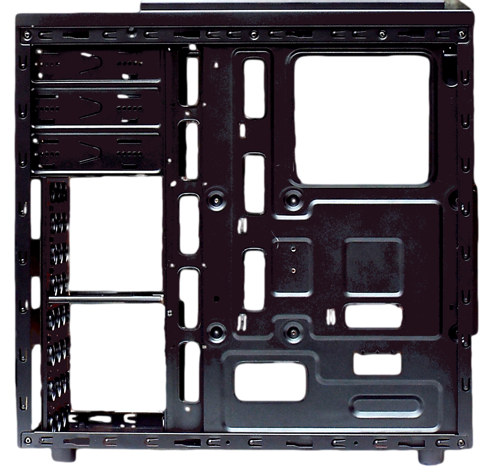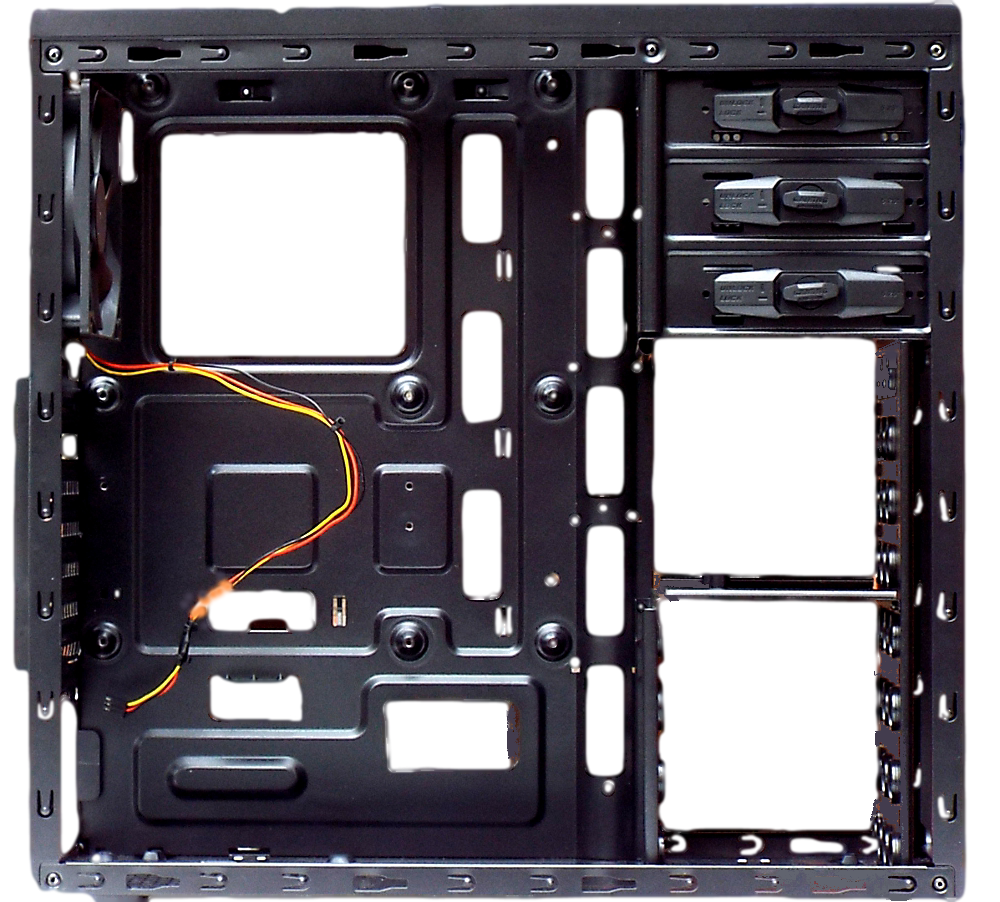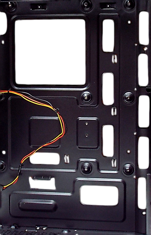 One of the first things that many experienced desktop system builders look for in a case is how easy (or difficult) that wiring the components up will be without ending up with a snarled mess; also known as cable management. Looking at the motherboard side of the interior of the case in the image below, we see quite a number of openings in both the motherboard tray and to the right of the tray.