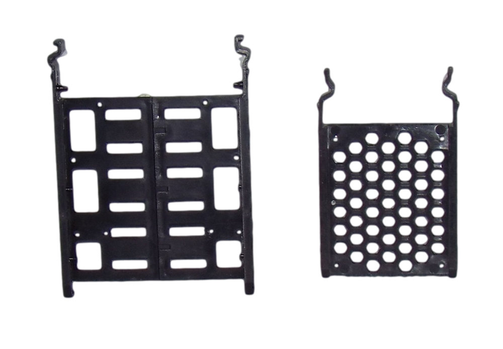 The drive trays themselves are simple to remove and reinstall. Squeezing the exposed tabs away from the cage walls allows you to slide the tray right out, and merely slide it back in until it latches into place. In the image below, we see both sizes of drive trays.
