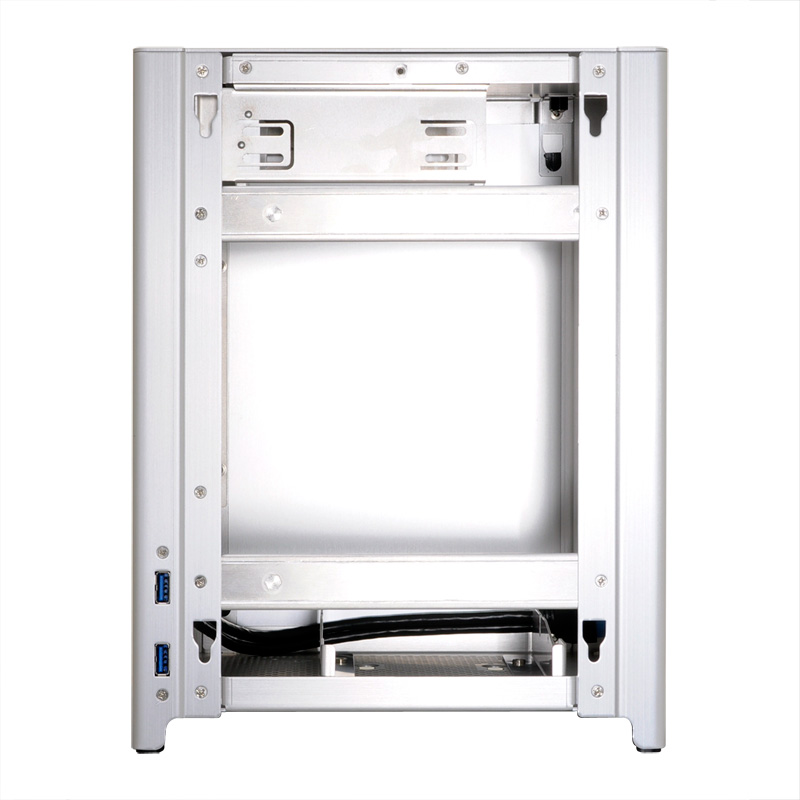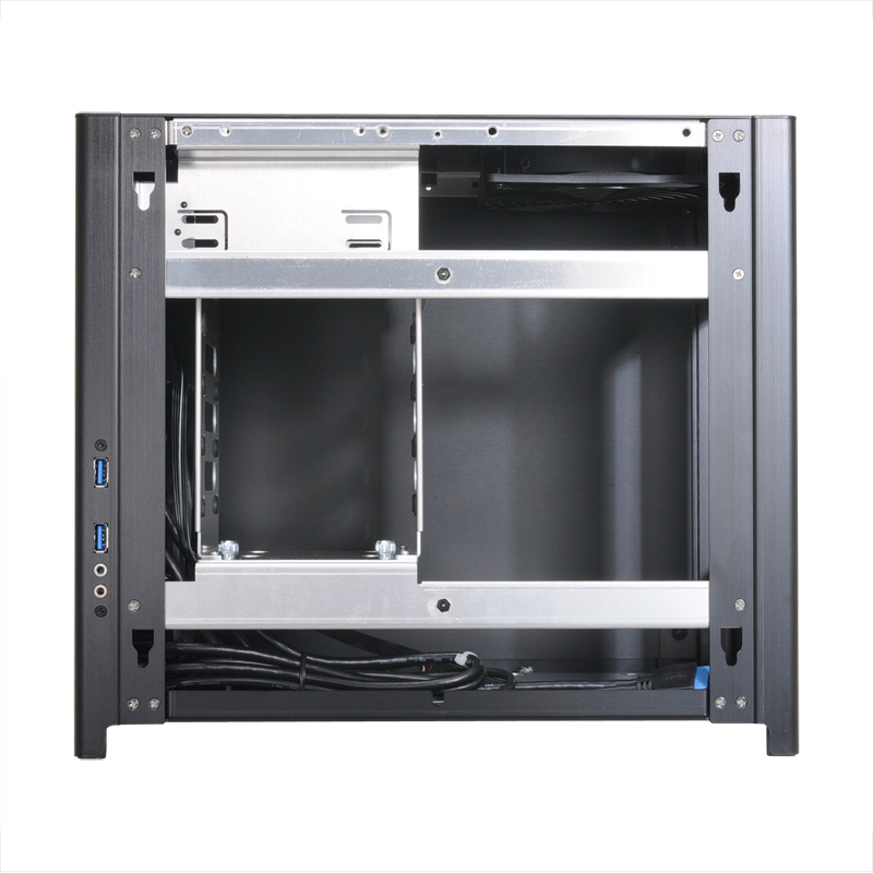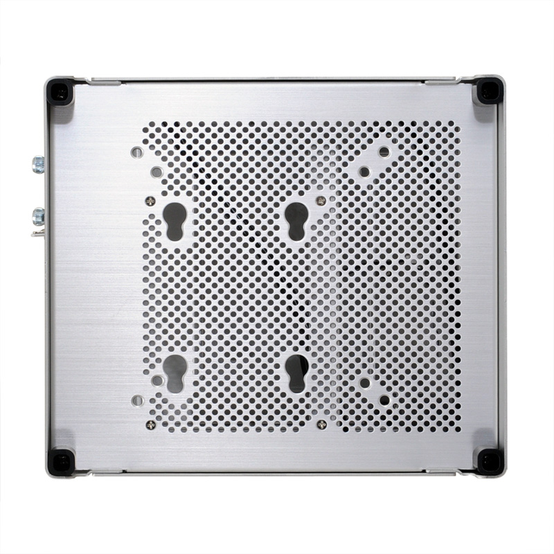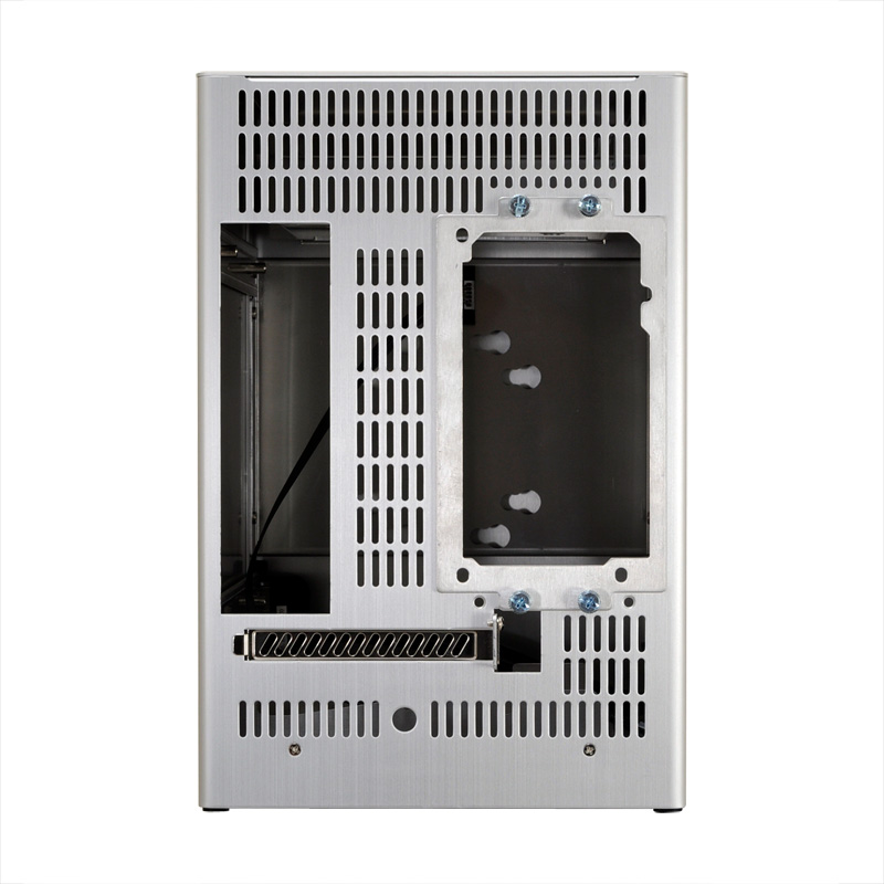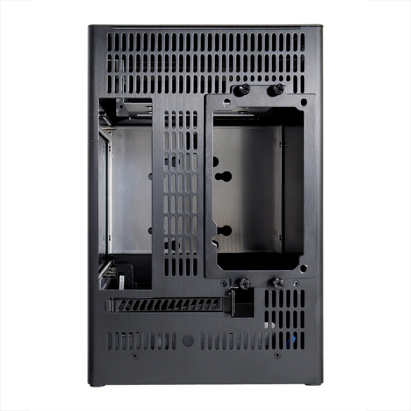 The PC-Q27 features passive cooling design, due to less heat generation from Mini-ITX systems. Significant ventilation along the bottom and rear of the chassis keeps the internal components cool. For users who do want additional cooling, a 120mm fan can be installed on the bottom of the PC-Q27 once the bottom hard drive cage is taken out.