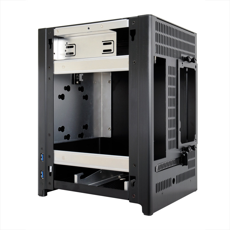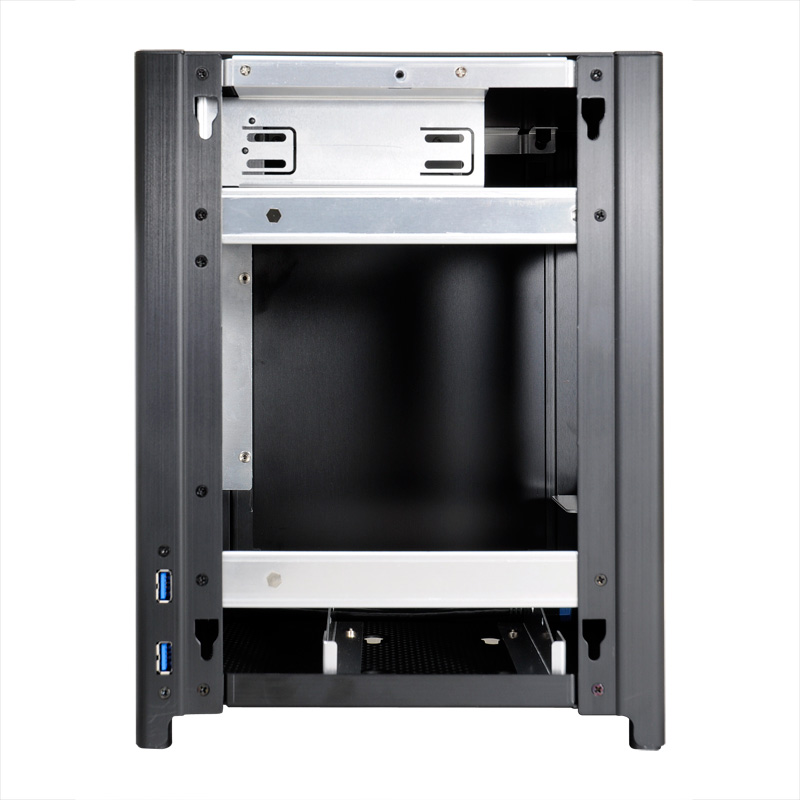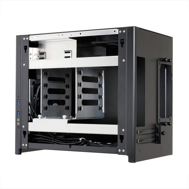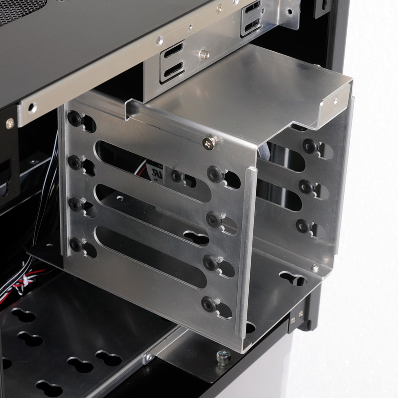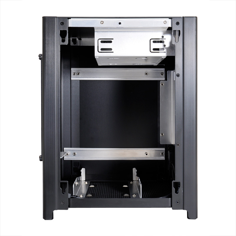 For DIY builders who like to tweak and modify the internals of cases, both of the PC-Q28’s hard drive cages are removable with a few twists of thumbscrews and screws. This gives an internal blank compartment for modding enthusiasts.