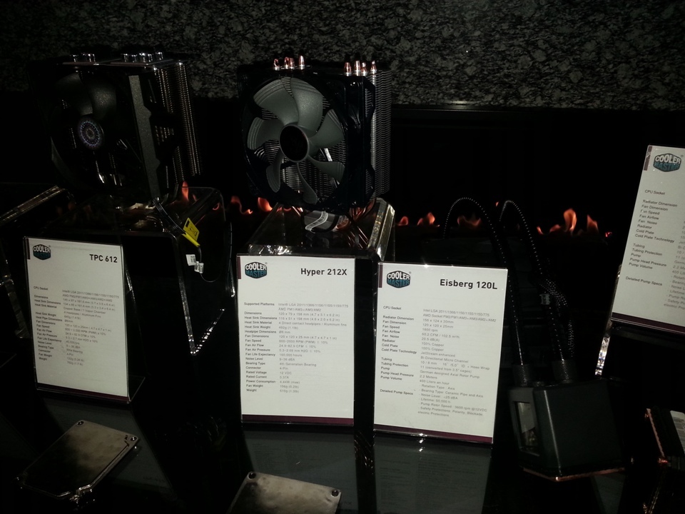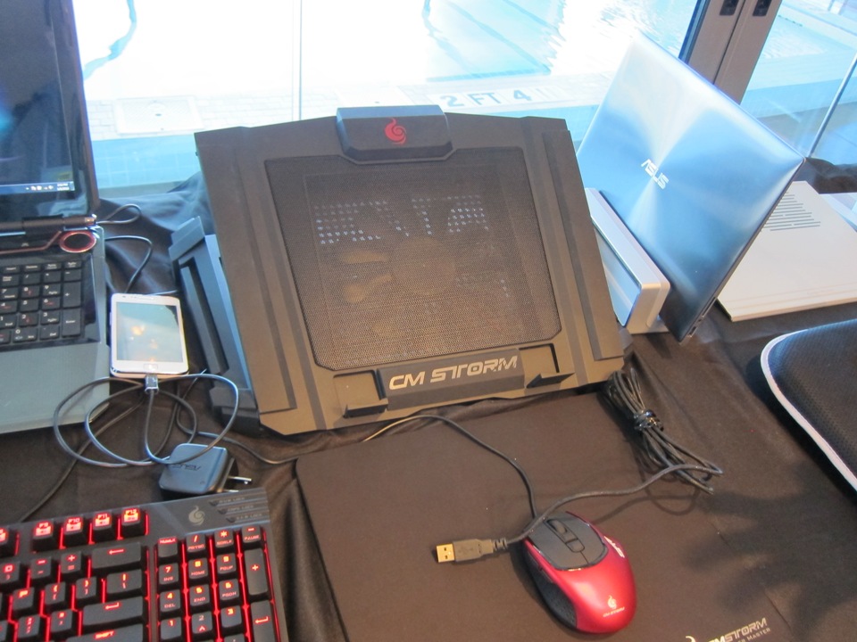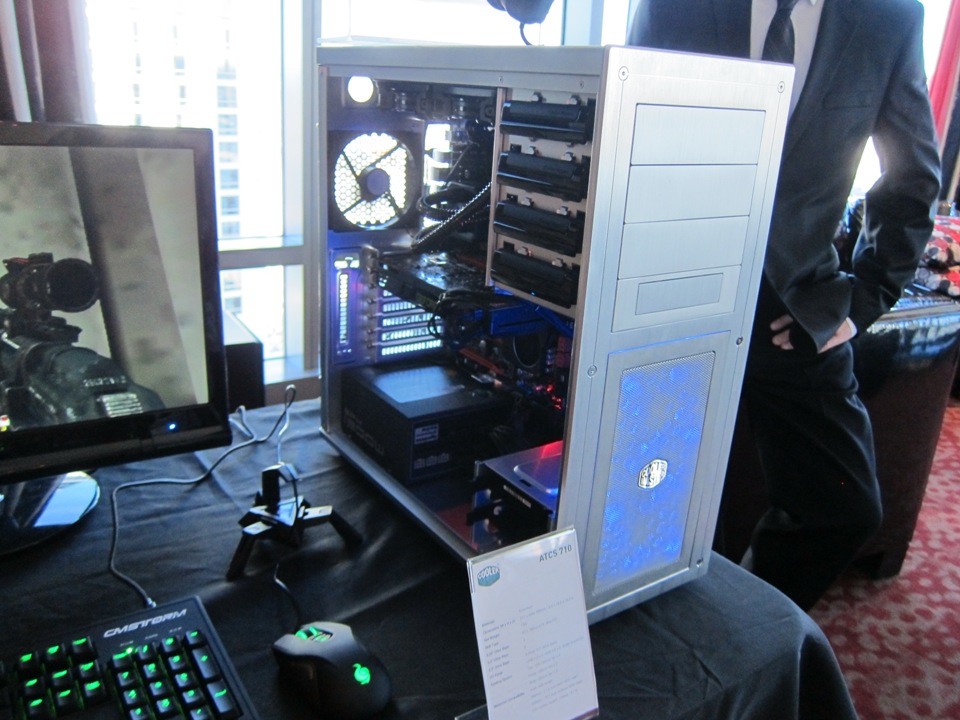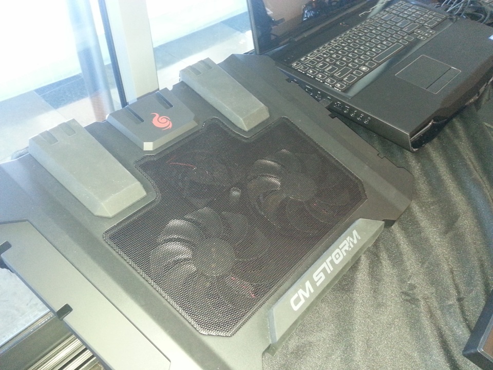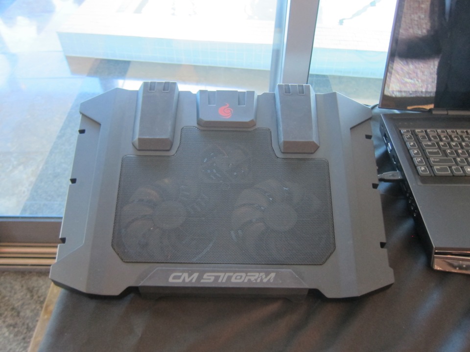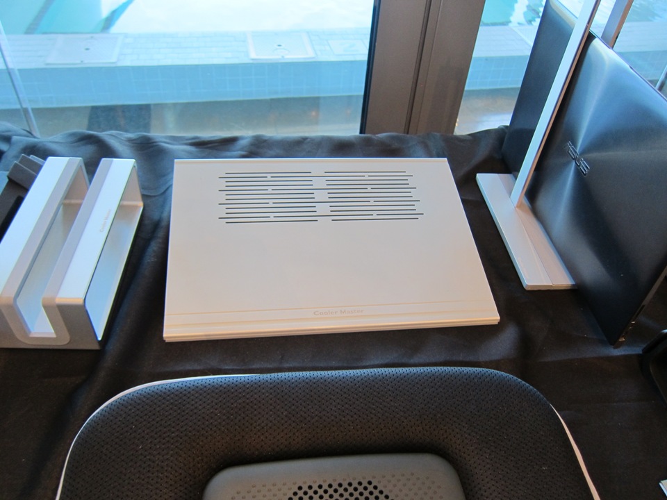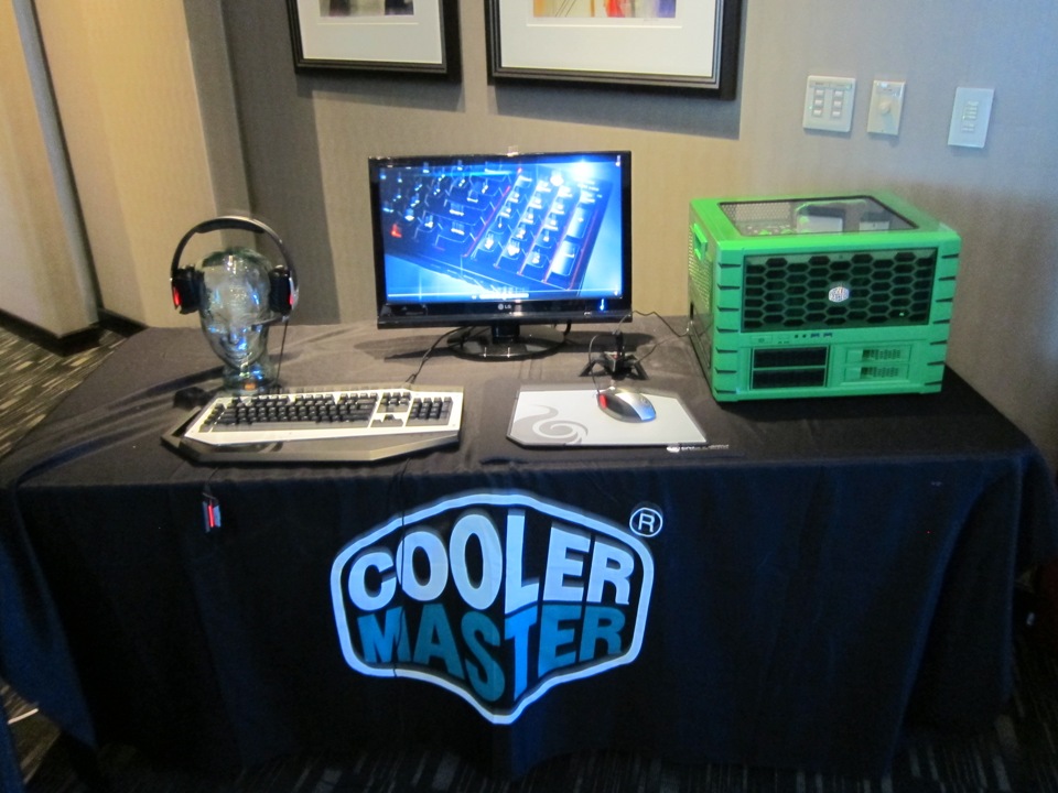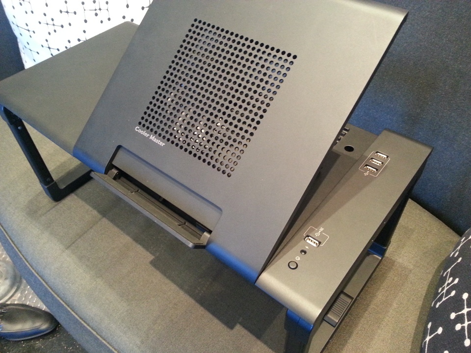 Cooler Master may not have a booth at CES 2013, but they sure have a solid presence nonetheless. I met with the company earlier today in their well-equipped suite and was awed by the layout of their showcase, which was neatly organized into three categories. The first one I visited was the Cooler Master Storm gaming area: Great (and funny) first impression, but it does not stop there. Cooler Master is pumping out some great ideas in their Storm line, such as removable aluminum panels on keyboards, mice, and headsets for eSports-type branding. If you are familiar with arcade sticks, these peripherals follow the same customization and modification - certainly more aesthetically pleasing than smacking a sticker on the side of a headset speaker. There is just way too much stuff to show, but what really caught my eyes is the Cooler Master green-switched keyboard called the "Storm Trigger Green". The Cherry MX green switches are brand new and exclusively available to Cooler Master in North America. The typing experience is absolutely amazing. Think of the greens as a mix between the blues, browns, and reds: tactile feedback, low noise output, and a very low actuation point. To sum it up in one word: brilliant. The home and mobile convenience category is definitely what Cooler Master is targeting heavily. They featured a plethora of stands, device docks, tablet cases, and universal adapters. One of the two products that really captured my attention included pillow-styled cooling pads: The second is a table...yup, a table. Not just any table mind you. It doubles as a stand for your laptop or tablet, and the stand can be removed and repositioned in a variety of ways. It is something I never knew I wanted so badly; such a great futuristic concept, except realized. Cooler Master is still working on the design, as they want to add a cup holder in the empty space clear of ports, yet it still looks fabulous in its current state. Finally getting to the third area of desktops and coolers, I saw a lot of budget-friendly, small form-factor yet fully-featured chassis and heatsinks, as well as faster fans and powerful PSU's. Personally I have never seen a case utilize the sides for radiator installation and I was not expecting it to be capable, nay, possible at these sizes: The new CPU heatsinks have been fitted with vapour-chamber cooling, a method used by many GPU production companies, and yes it is present refresh of the extremely popular Hyper 212+: the Hyper 212X. Simply put, vapour-chamber cooling works in conjunction with normal copper-heatpipe cooling to keep your CPU running at chilly temperatures. Again, Cooler Master is completely loaded and I have gone over just a couple of their products. Make sure to check out the gallery below to preview all of Cooler Master's present and future offerings.