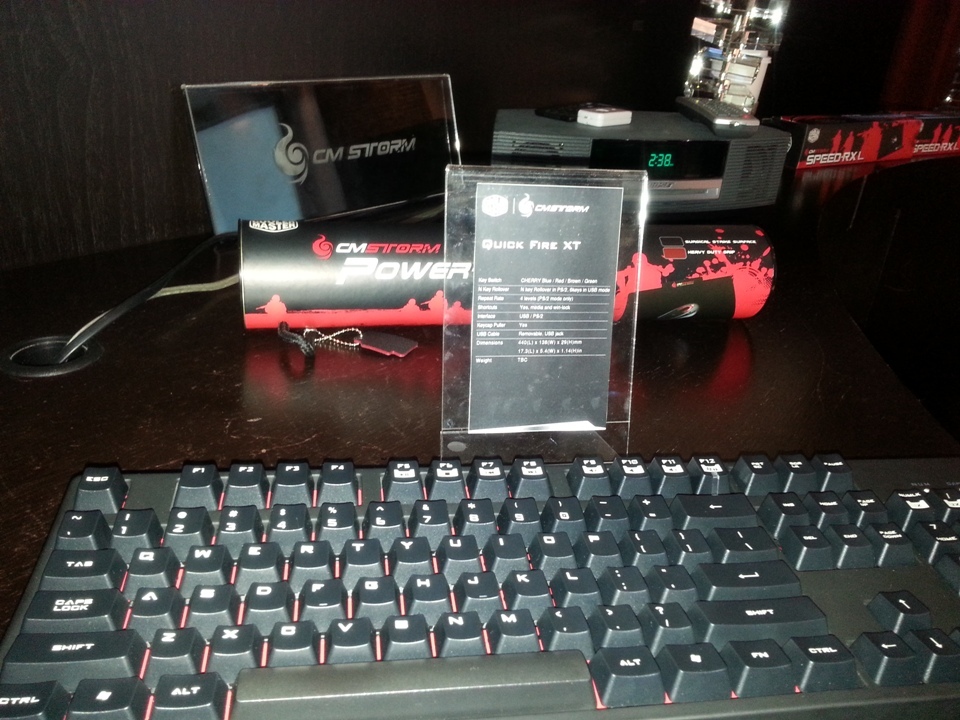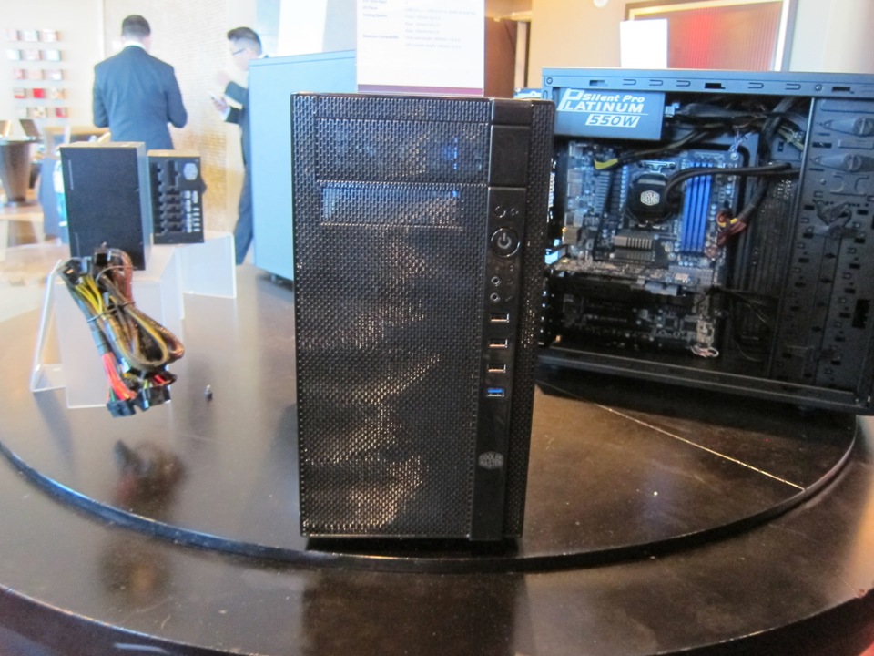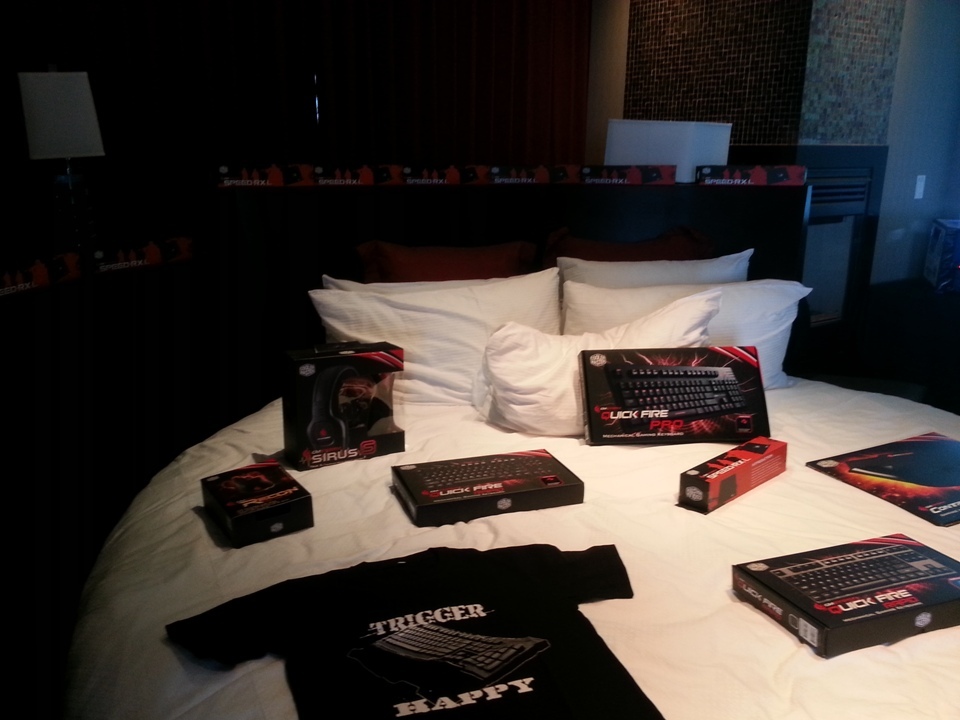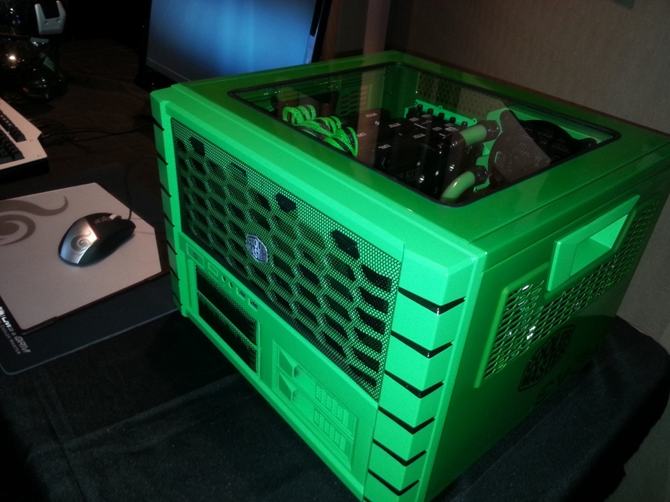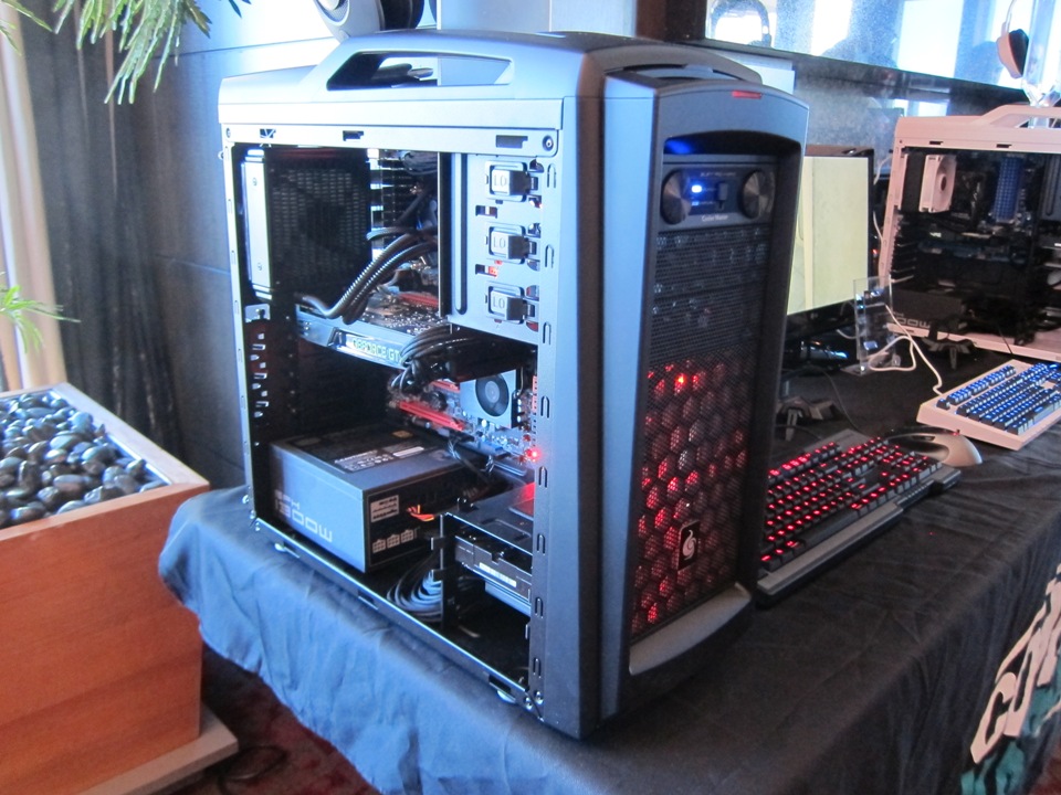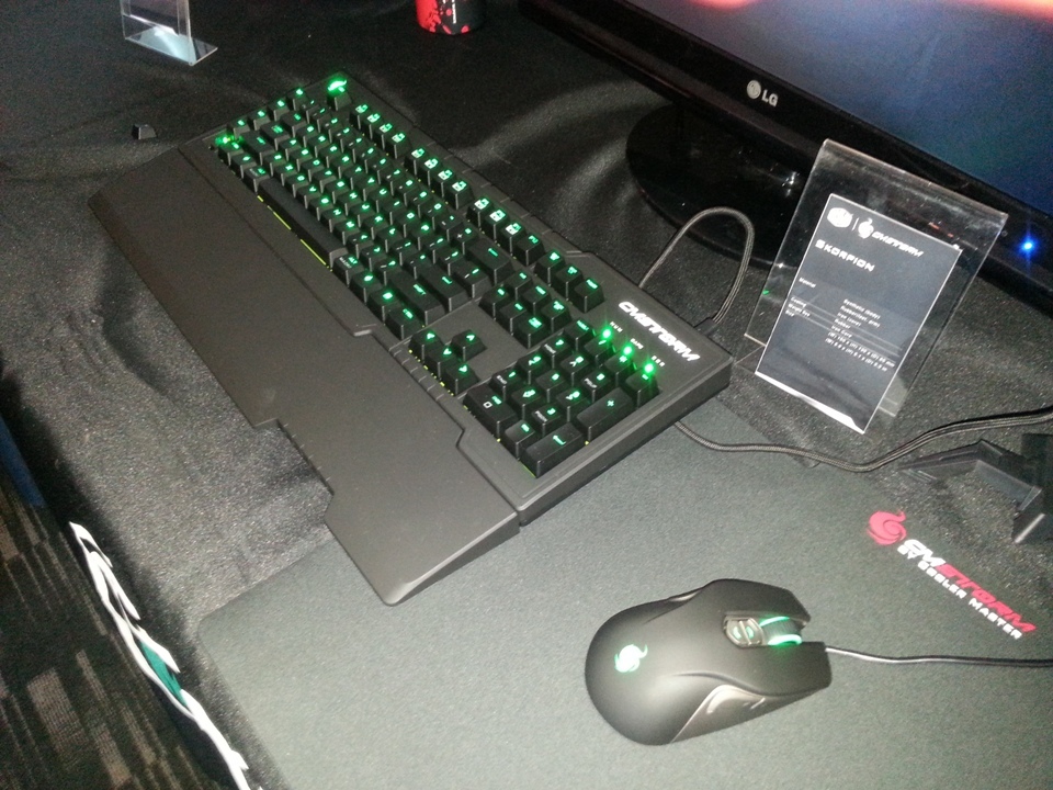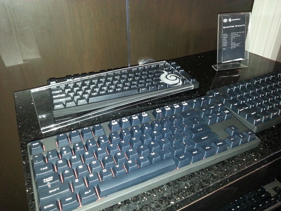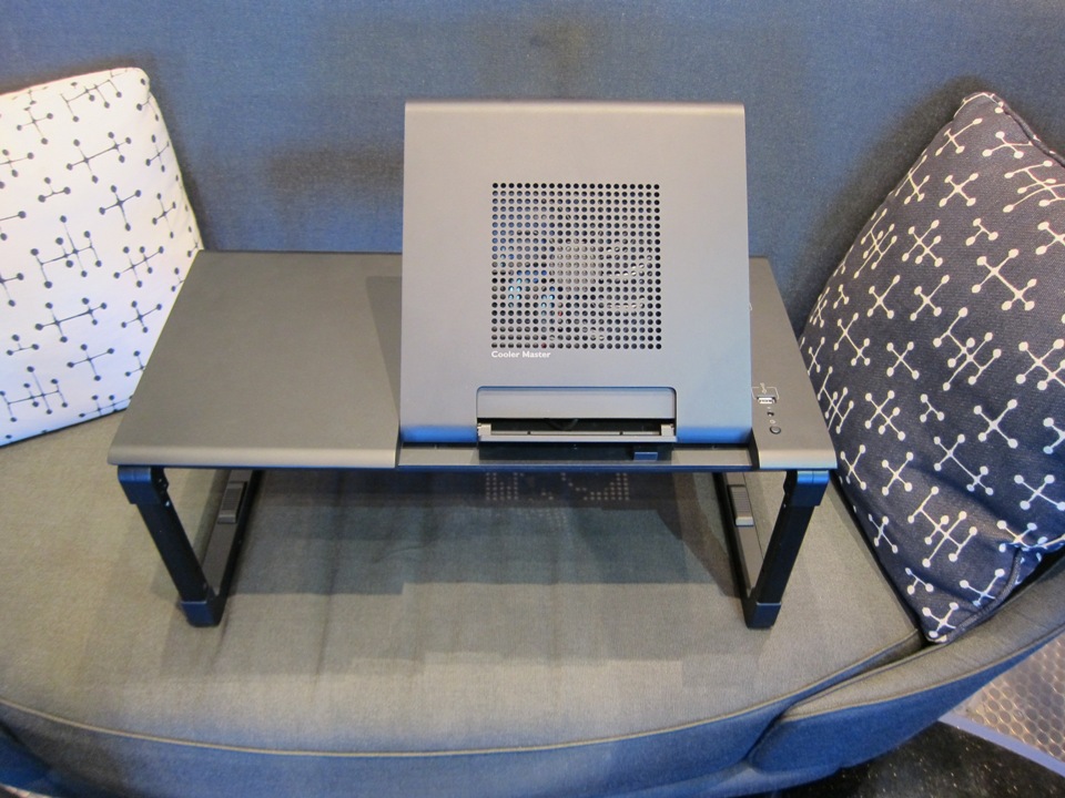 Cooler Master may not have a booth at CES 2013, but they sure have a solid presence nonetheless. I met with the company earlier today in their well-equipped suite and was awed by the layout of their showcase, which was neatly organized into three categories. The first one I visited was the Cooler Master Storm gaming area: Great (and funny) first impression, but it does not stop there. Cooler Master is pumping out some great ideas in their Storm line, such as removable aluminum panels on keyboards, mice, and headsets for eSports-type branding. If you are familiar with arcade sticks, these peripherals follow the same customization and modification - certainly more aesthetically pleasing than smacking a sticker on the side of a headset speaker. There is just way too much stuff to show, but what really caught my eyes is the Cooler Master green-switched keyboard called the "Storm Trigger Green". The Cherry MX green switches are brand new and exclusively available to Cooler Master in North America. The typing experience is absolutely amazing. Think of the greens as a mix between the blues, browns, and reds: tactile feedback, low noise output, and a very low actuation point. To sum it up in one word: brilliant. The home and mobile convenience category is definitely what Cooler Master is targeting heavily. They featured a plethora of stands, device docks, tablet cases, and universal adapters. One of the two products that really captured my attention included pillow-styled cooling pads: The second is a table...yup, a table. Not just any table mind you. It doubles as a stand for your laptop or tablet, and the stand can be removed and repositioned in a variety of ways. It is something I never knew I wanted so badly; such a great futuristic concept, except realized. Cooler Master is still working on the design, as they want to add a cup holder in the empty space clear of ports, yet it still looks fabulous in its current state. Finally getting to the third area of desktops and coolers, I saw a lot of budget-friendly, small form-factor yet fully-featured chassis and heatsinks, as well as faster fans and powerful PSU's. Personally I have never seen a case utilize the sides for radiator installation and I was not expecting it to be capable, nay, possible at these sizes: The new CPU heatsinks have been fitted with vapour-chamber cooling, a method used by many GPU production companies, and yes it is present refresh of the extremely popular Hyper 212+: the Hyper 212X. Simply put, vapour-chamber cooling works in conjunction with normal copper-heatpipe cooling to keep your CPU running at chilly temperatures. Again, Cooler Master is completely loaded and I have gone over just a couple of their products. Make sure to check out the gallery below to preview all of Cooler Master's present and future offerings.