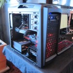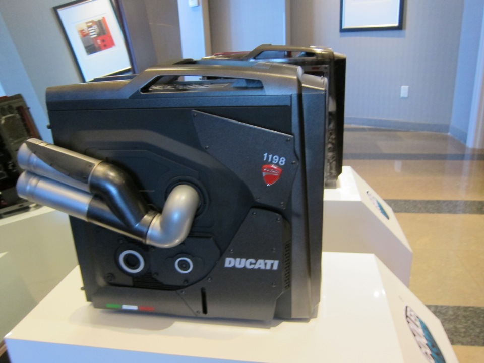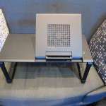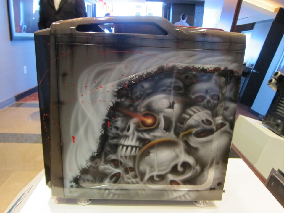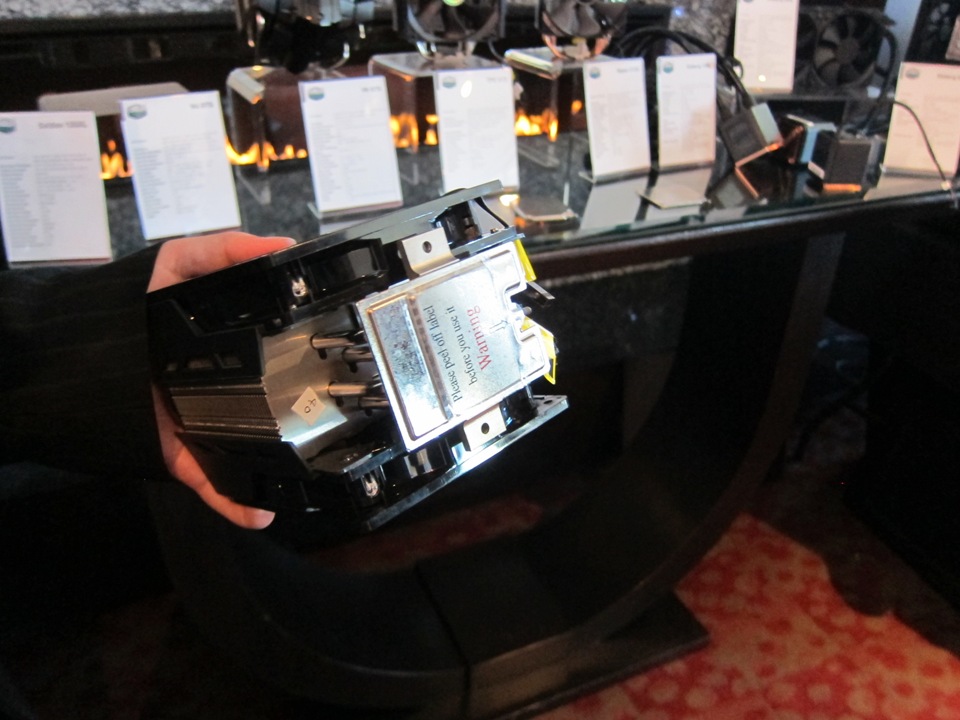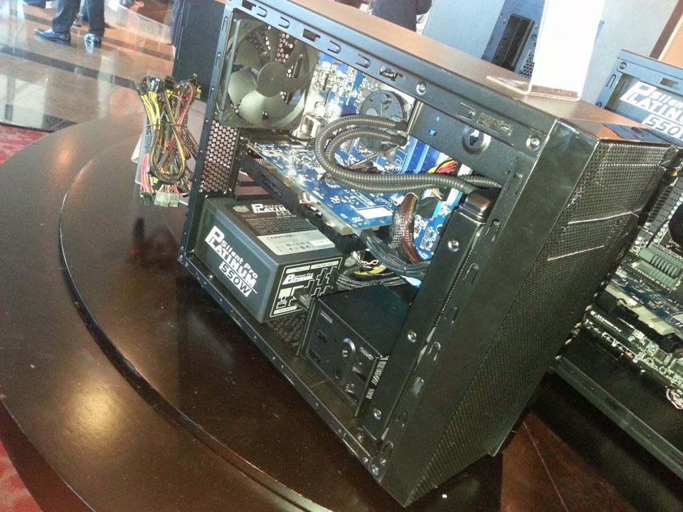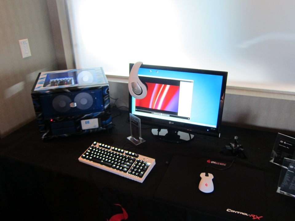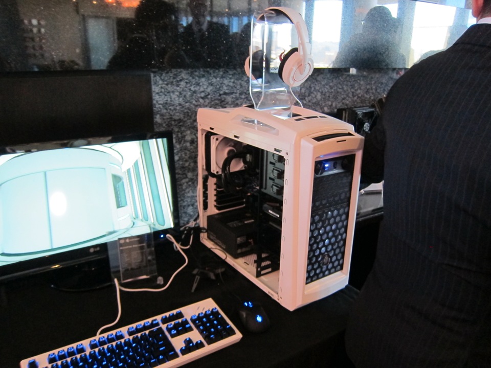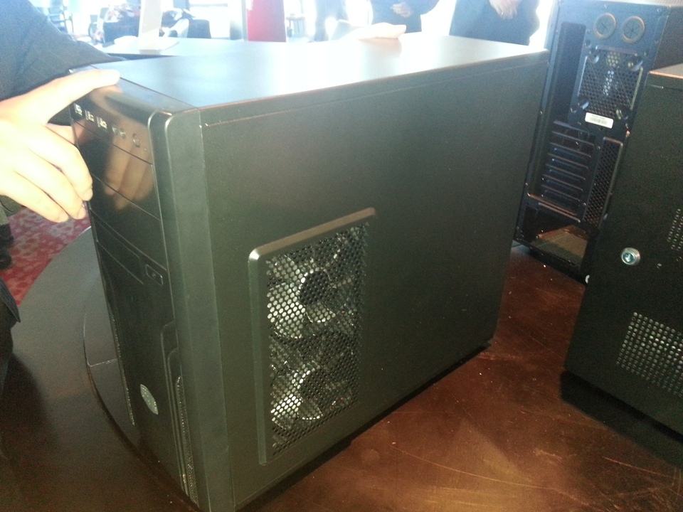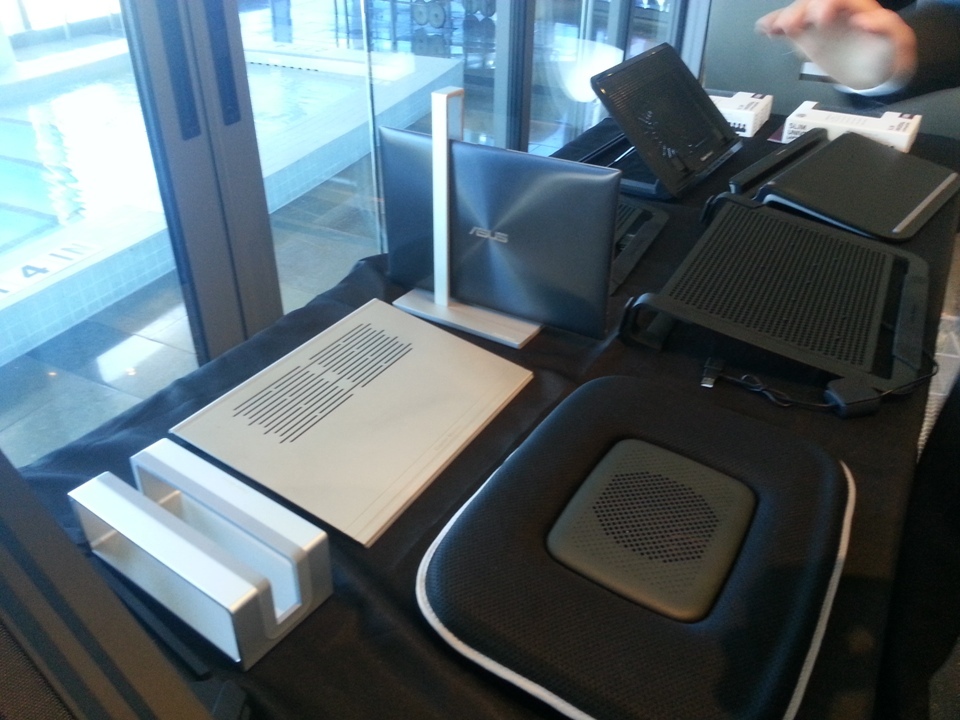 Cooler Master may not have a booth at CES 2013, but they sure have a solid presence nonetheless. I met with the company earlier today in their well-equipped suite and was awed by the layout of their showcase, which was neatly organized into three categories. The first one I visited was the Cooler Master Storm gaming area: Great (and funny) first impression, but it does not stop there. Cooler Master is pumping out some great ideas in their Storm line, such as removable aluminum panels on keyboards, mice, and headsets for eSports-type branding. If you are familiar with arcade sticks, these peripherals follow the same customization and modification - certainly more aesthetically pleasing than smacking a sticker on the side of a headset speaker. There is just way too much stuff to show, but what really caught my eyes is the Cooler Master green-switched keyboard called the "Storm Trigger Green". The Cherry MX green switches are brand new and exclusively available to Cooler Master in North America. The typing experience is absolutely amazing. Think of the greens as a mix between the blues, browns, and reds: tactile feedback, low noise output, and a very low actuation point. To sum it up in one word: brilliant. The home and mobile convenience category is definitely what Cooler Master is targeting heavily. They featured a plethora of stands, device docks, tablet cases, and universal adapters. One of the two products that really captured my attention included pillow-styled cooling pads: The second is a table...yup, a table. Not just any table mind you. It doubles as a stand for your laptop or tablet, and the stand can be removed and repositioned in a variety of ways. It is something I never knew I wanted so badly; such a great futuristic concept, except realized. Cooler Master is still working on the design, as they want to add a cup holder in the empty space clear of ports, yet it still looks fabulous in its current state. Finally getting to the third area of desktops and coolers, I saw a lot of budget-friendly, small form-factor yet fully-featured chassis and heatsinks, as well as faster fans and powerful PSU's. Personally I have never seen a case utilize the sides for radiator installation and I was not expecting it to be capable, nay, possible at these sizes: The new CPU heatsinks have been fitted with vapour-chamber cooling, a method used by many GPU production companies, and yes it is present refresh of the extremely popular Hyper 212+: the Hyper 212X. Simply put, vapour-chamber cooling works in conjunction with normal copper-heatpipe cooling to keep your CPU running at chilly temperatures. Again, Cooler Master is completely loaded and I have gone over just a couple of their products. Make sure to check out the gallery below to preview all of Cooler Master's present and future offerings.