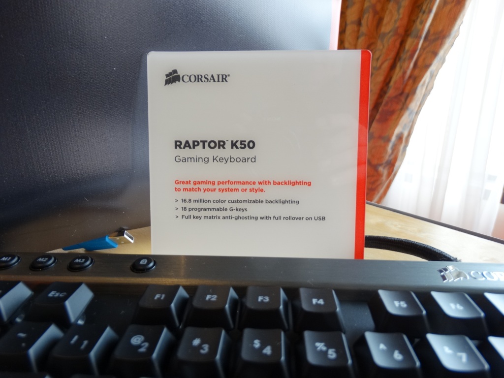 The Corsair Raptor K50 gaming keyboard combines a comfortable membrane key feel, onboard macro storage, 100% anti-ghosting with full-key rollover on USB, and 16.8 million color customizable backlighting to create a precision gaming keyboard that can be customized for specific games, tactics, and playing styles. The keyboard features 18 programmable gaming keys and three banks for up to 54 macros that can be stored in the keyboard’s built-in memory. The Raptor K50 also has six dedicated multimedia keys for convenient music and video playback and a Windows® lock key for uninterrupted game play.