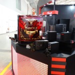 The most stunning display came in the custom-built Rosewill Rise system, featuring dual Intel E5 Xeons, 3-way SLI EVGA GeFORCE GTX TITAN graphics cards, and 2 x 280mm water cooling units all in a nice package featuring the ultimate high end components.