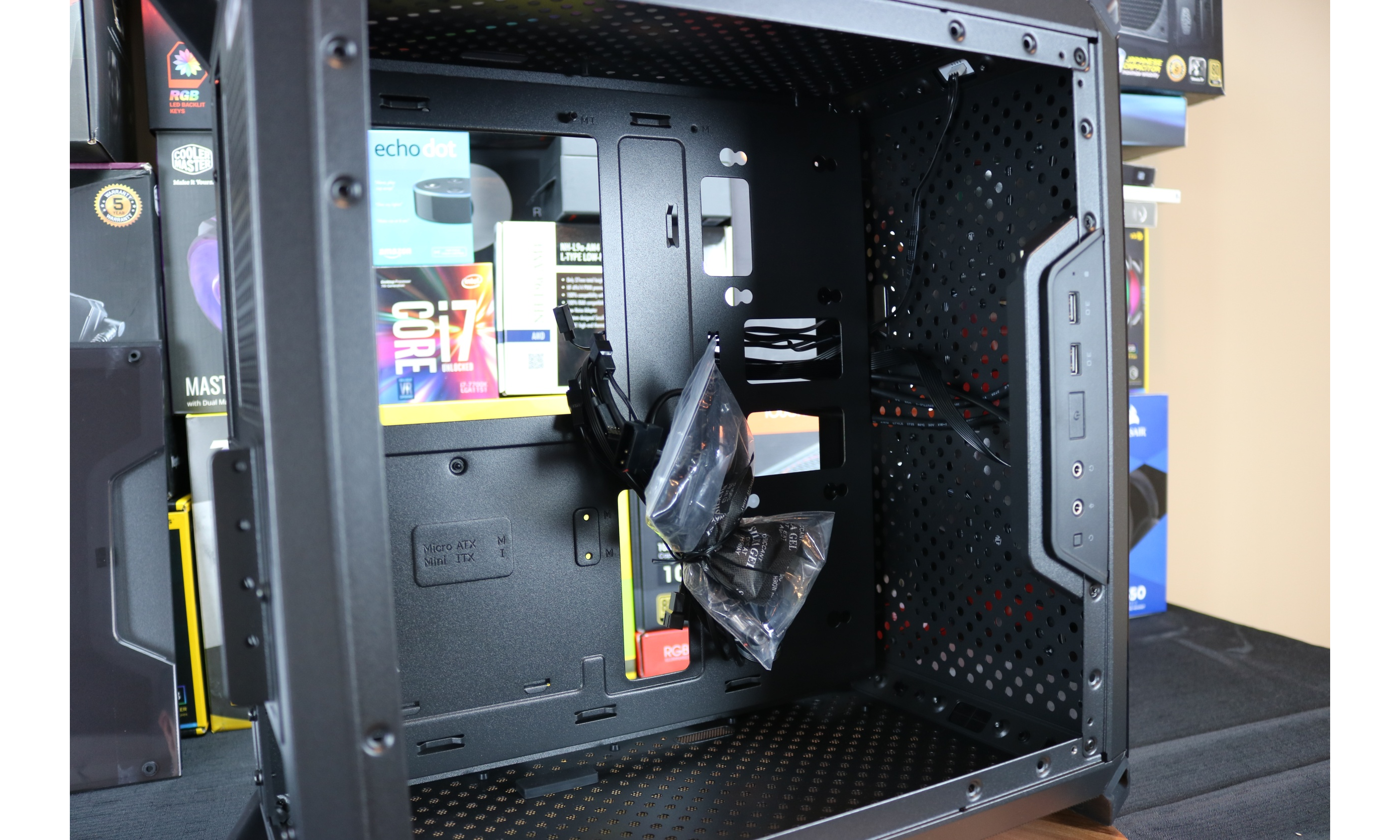Cable management should not be an issue here. Cooler Master has added in a huge 28mm clearance to clean up the addition of all the cables. We enjoy the ability to easily hide and sort through cables.