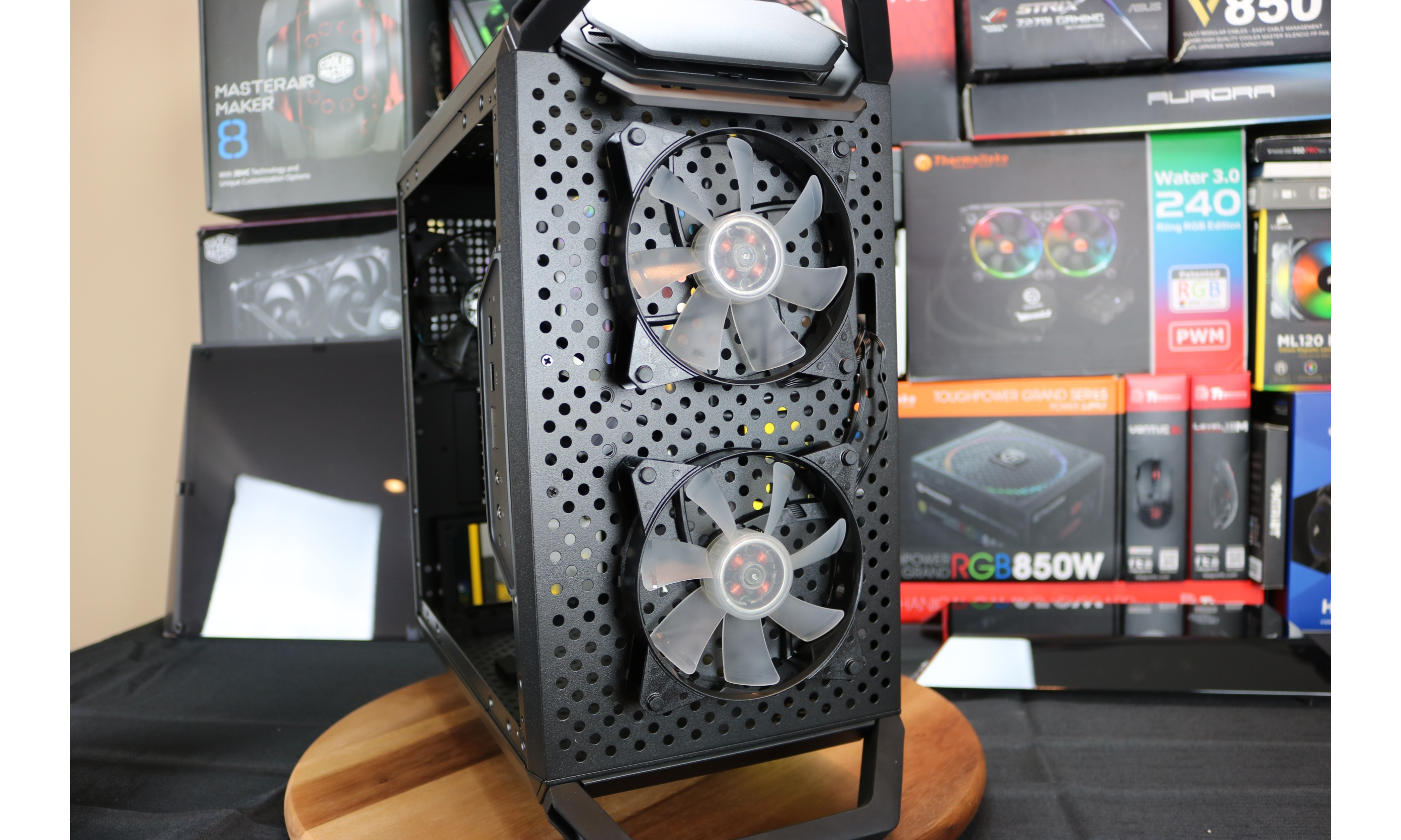 We see a new honeycomb design here to create an outstanding potential for custom set ups. Included are the specs for the fan placement, however, with the honeycomb design there is plenty of room for play as this system is truly modular.