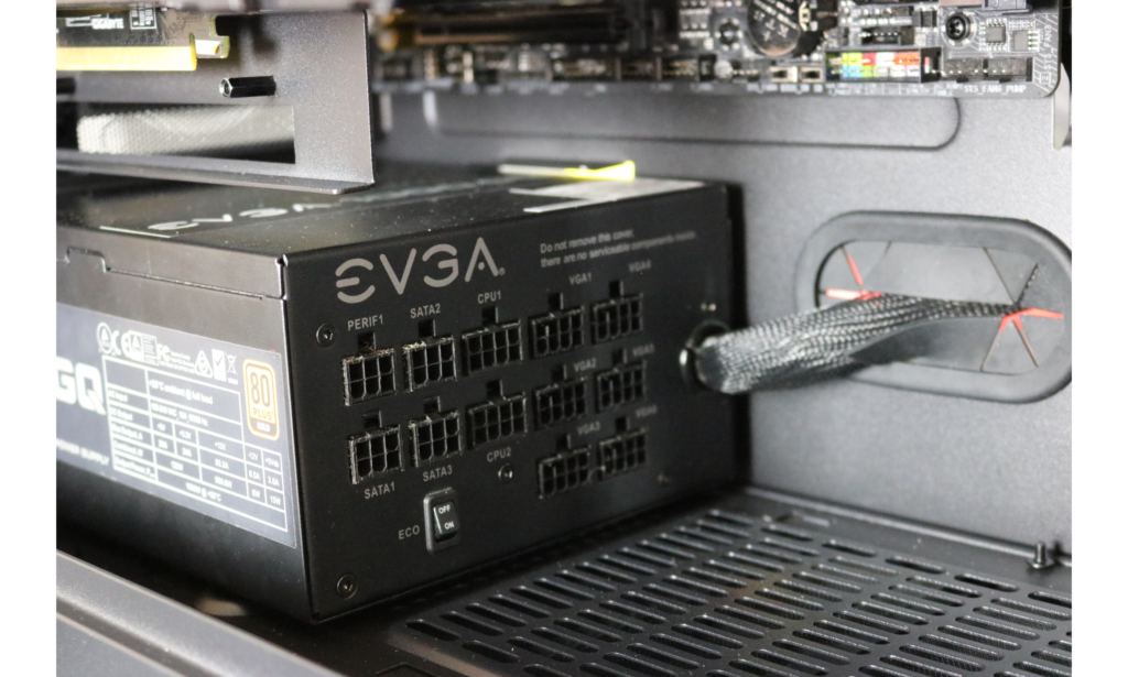 PSU installation was very standard and the rubber power cable grommet had ample room for all of our power cables. We liked how our GPU to some extent hid the bottom connections of our motherboard to clean up the build and add extra aesthetics.