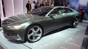 Audi’s featured vehicle was the hybrid-powered Audi Prologue concept car. Like several other manufacturers, Audi sees hydrogen fuel cell hybrids as the next-generation solution for hybrids. Above we see two images of the Prologue concept luxury hybrid.