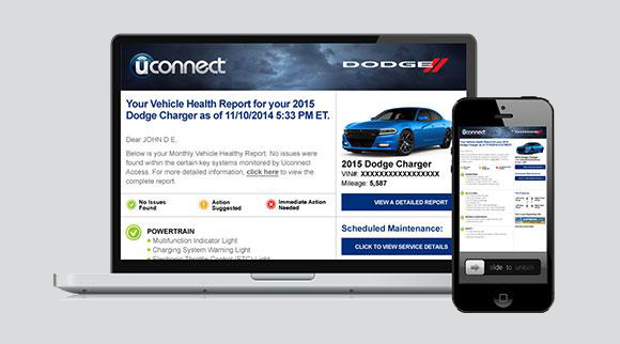 Well it appears that we have saved the best for last. Fiat / Chrysler is touting its acclaimed “Uconnect Access” suite of connected in-vehicle services. Uconnect is introducing all-new services called Vehicle Finder, Monthly Vehicle Report and Vehicle Health Alert. These additional services are designed to help vehicle owners monitor and maintain important vehicle systems, easily navigate to desired destinations and keep track of your vehicle’s location at all times. Below is a screenshot of what the monthly vehicle report looks like.