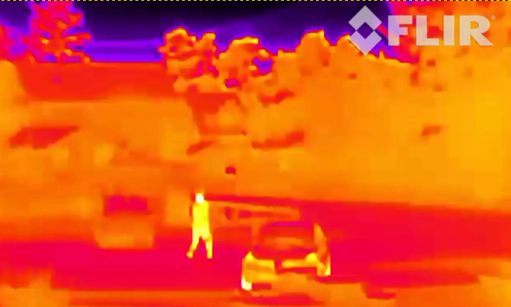 Flir is involved in bringing thermal imaging into the VR arena. First developed for military and law enforcement applications, VR thermal imaging is extremely useful in helping locate enemy combatants, fugitives, missing persons, and even the likes of live game poachers. The first image above is a nighttime thermal imaging view of the Las Vegas Strip – quite impressive! The next image is of a man walking through a park as viewed from an elevated vantage point.