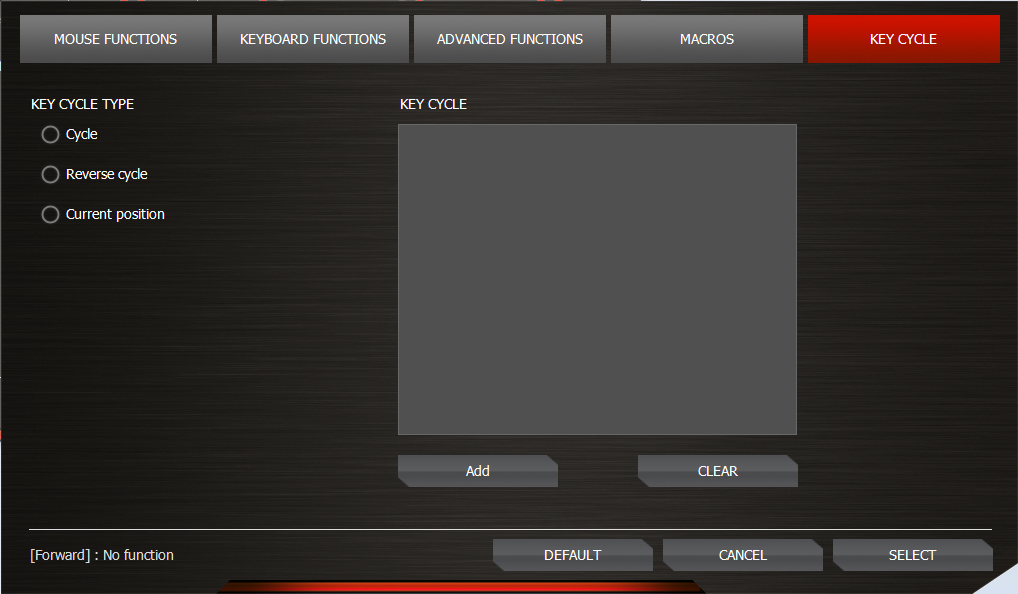 As you can see, there are five profiles to customize from as well as four tabs at the top to allow you customize the V570 to your liking. When customizing your buttons you simply click on the attached function box and it’ll open a plethora of options available to you. Mouse and keyboard functions can be programmed which are fairly straight forward. You want the right-click button to scroll or act as the letter “Q” feel free to do so.