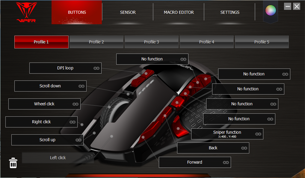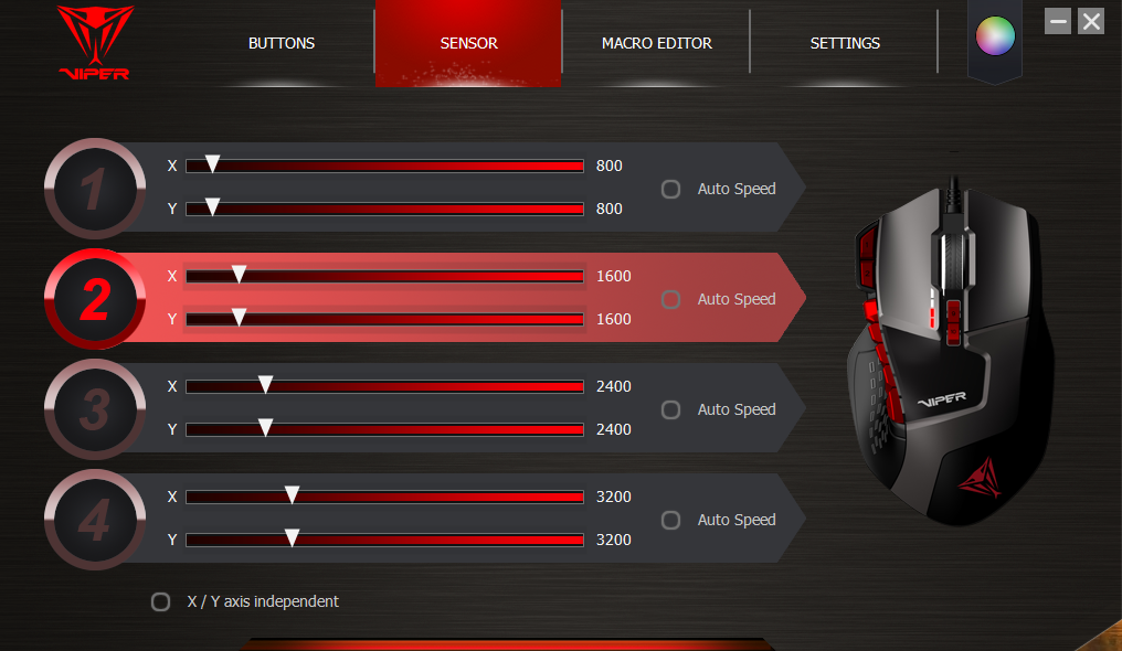 Keep in mind that the sensor settings are set for all five profiles and DPI settings can’t be changed between them. So set them accordingly as the profiles only allow you to change the button configurations while the four DPI settings will stay constant. This may be a learning point as users would hope to expect they could have different DPI settings for each profile.