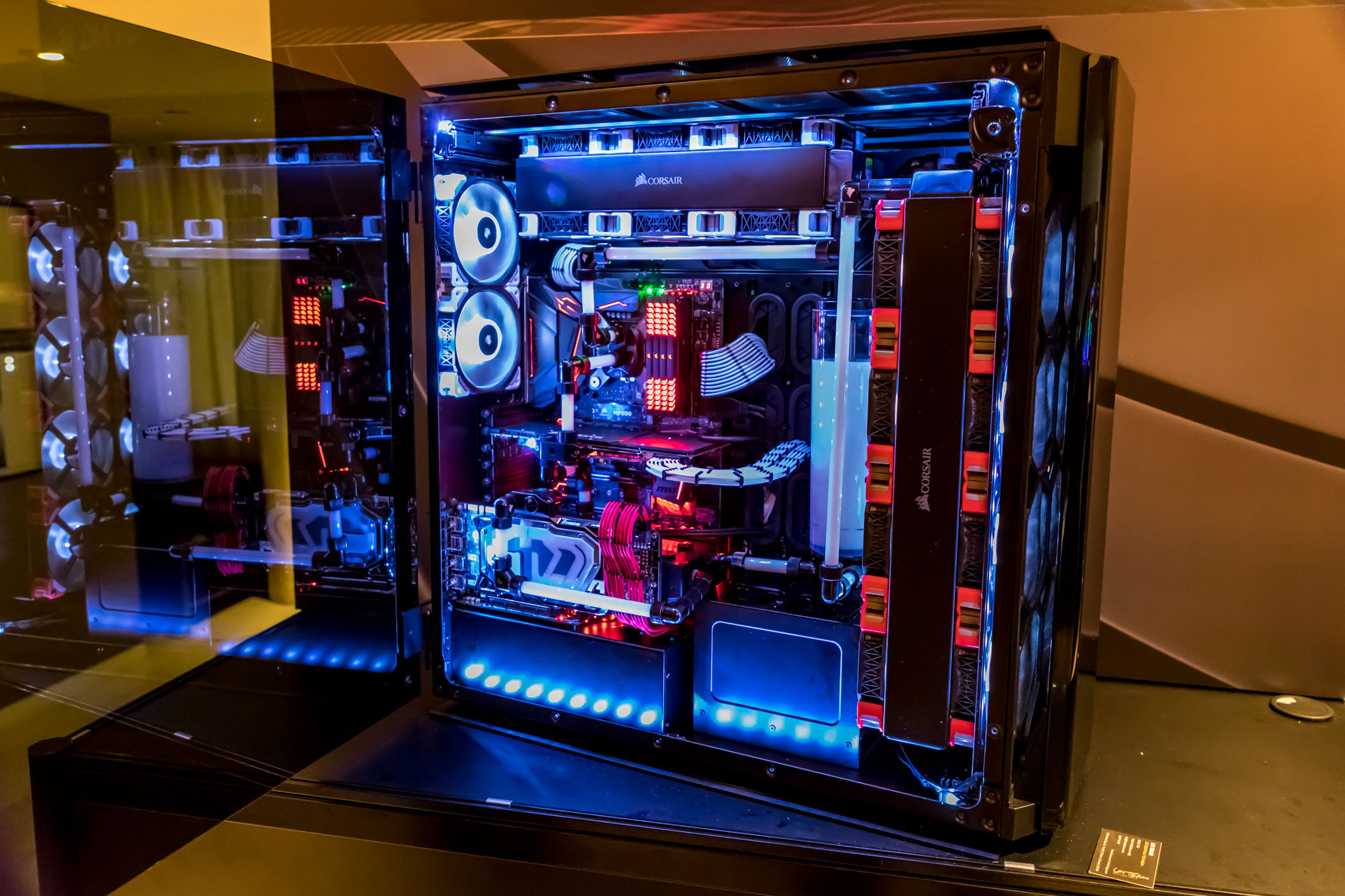 Next up, we get a look at the Corsair Concept Slate. To say the Slate is a big order might fit when we consider that this chassis can house two complete systems, fully equipped with massive liquid coolers.