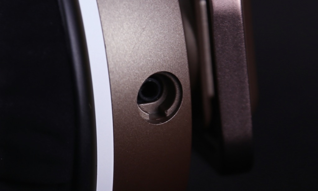 Attaching the ear cups to the soft rubber headband is, what appears to be, high-quality stainless steel hinges. This allows for the headset to be easily folded and compacted for travel.