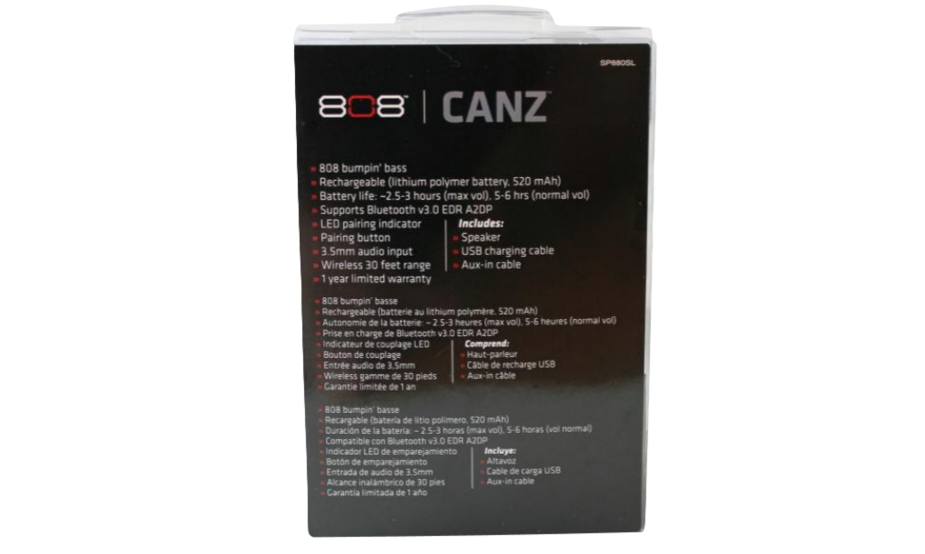 One of the hardest parts of buying a Bluetooth speaker is knowing what the sound quality will be. When it comes to the Bluetooth distance, we found it gives you about 30 feet before the Bluetooth connection starts to cut out. While testing the endurance of this bluettoh speaker, we found that the 808 Canz gave us almost 5 hours of listening time before cutting out. From our test trials, we found that this speaker performed best with low bass songs, audio books and podcasts, set at approximately half volume. We next turned our attention to movie audio, we hooked the 808 Canz to a laptop via Bluetooth and watched a few movies. We were very pleased with the performance, as the audio quality was quite exceptional for such a small device. While listening to the speaker, either through Bluetooth or the 3.5mm audio cable, we found that if you turn the volume up above 80% you started to encounter a little bit of distortion, where the sound was not as crisp as it was at lower volume levels.