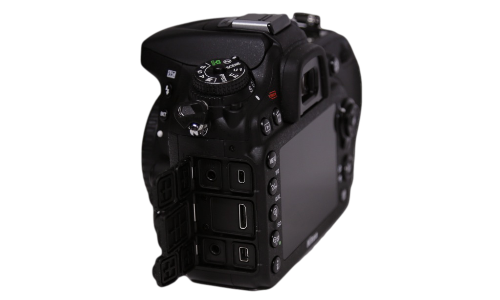 On the left side of the Nikon D7100 you can find the input/output ports. You can connect a stereo microphone and headphones, HDMI and USB 2.0 devices. There is also a port that lets you connect accessories such as GPS and Wi-Fi mobile adapter.