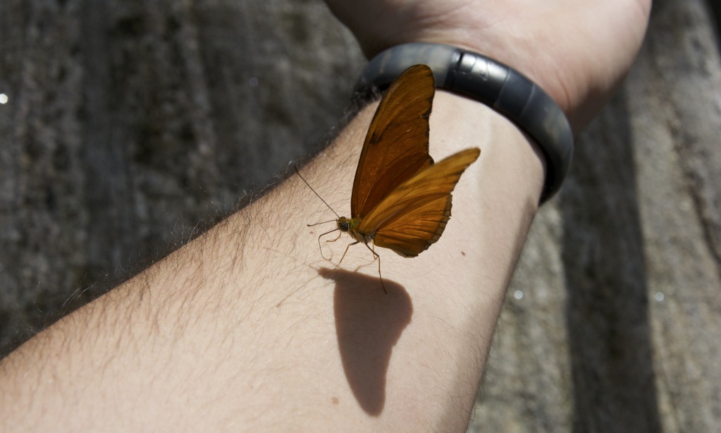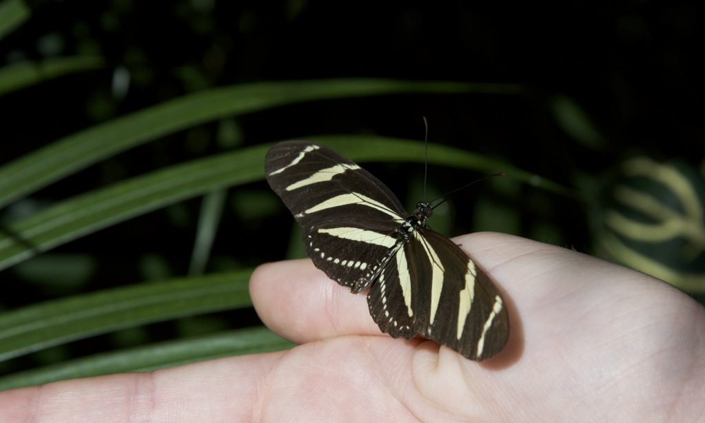 What was really neat at the conservatory was the trust butterflies have with the humans walking around the exhibit. These glorious insects would land pretty much anywhere, from hands and limbs, to purses. We even had one that tried to make a trip out of the conservatory by latching onto a leg, it almost made it too!