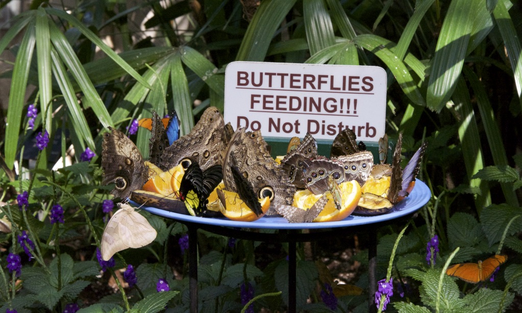 The conservatory goes as far as supplying feeding areas for the butterflies to, well, feed. The feeding areas consisted of succulent oranges for the butterflies to feed off of.