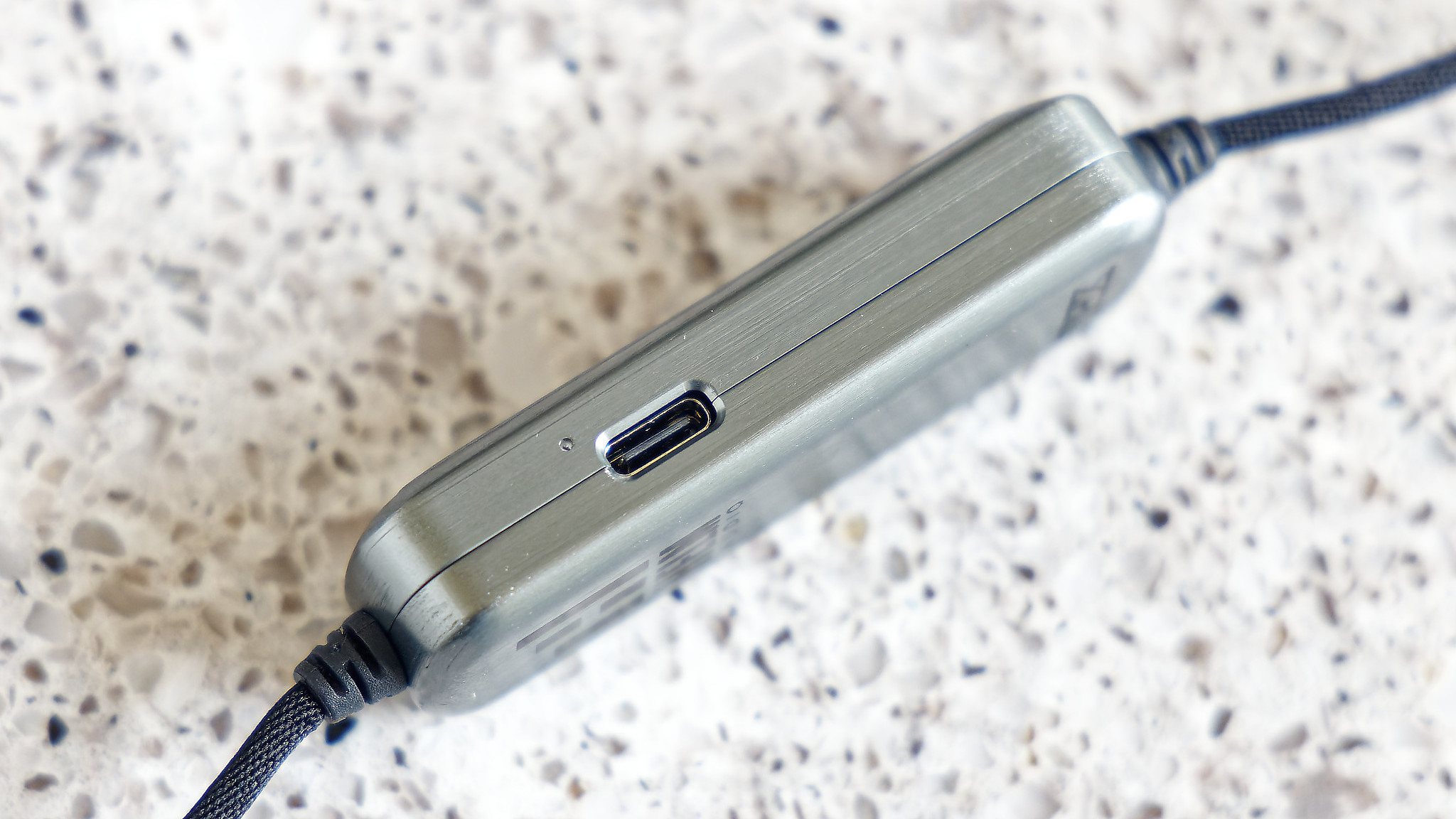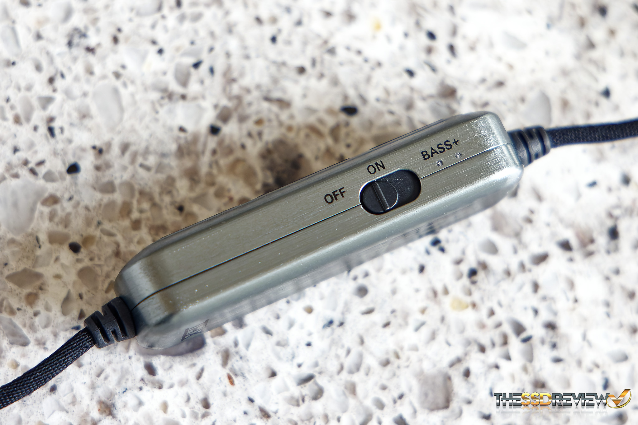 On top, we have large volume up and down buttons centered by a button used for play or pause (single tap), next track (double tap) and previous track (triple tap). The construction of the DB 12 itself is very nice being a brushed metal plastic design. Something that surprised us was that the DB 12 has pass through which means that if you ear buds are in and the DB12 is turned off, the original signal from the smartphone still passes through and onboard microphone operates during calls.