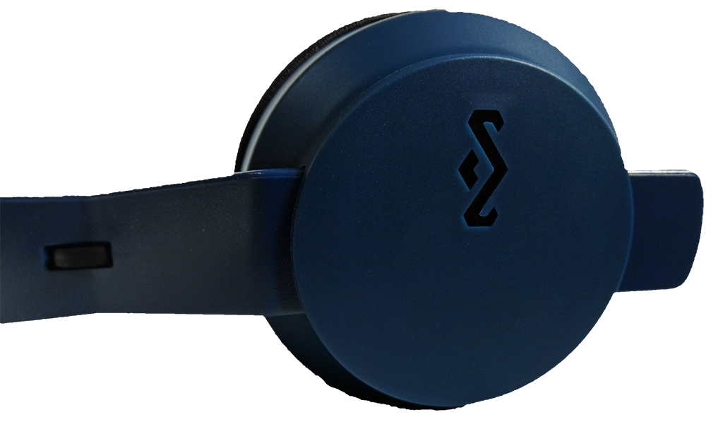 The headphones themselves come in one of three colour choices: navy blue, black, or grey. The headband is minimalistic in design yet quite comfortable. The ear cups aren’t the largest we’ve come across but they still fit out head very well with a nice snug feel.