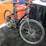 I stopped off at the eFlow booth and they showed me their funky looking e-bike. I walked past it at first and something about it just caught my eye. I want to say it’s just a mountain bike with an electric motor…but the design is truly amazing. It may look a little strange having such a curved contoured design and …
