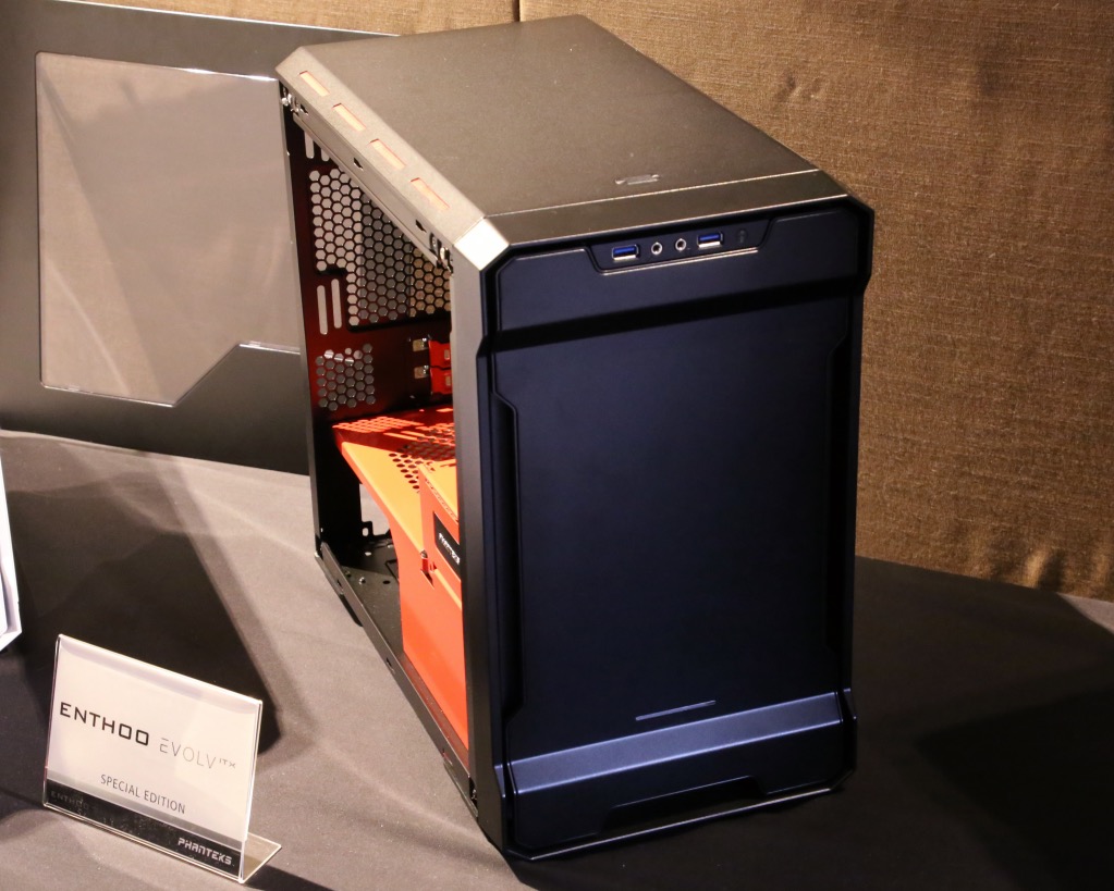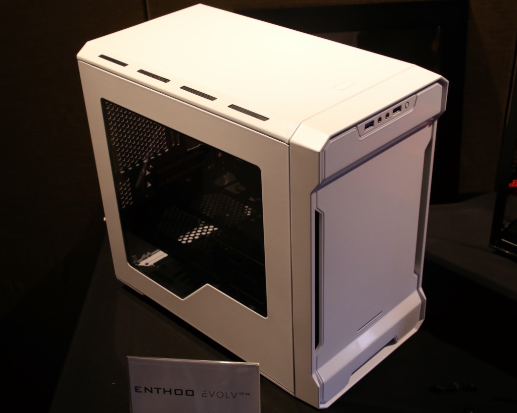 One of stops at Computex was at the Phanteks suite, where we witnessed their Enthoo chassis display, including the Evolv ITX and Evolv ATX and the new Enthoo Pro M. You may recall our previous in-depth look at the Enthoo Evolv ITX here, and pictured below: