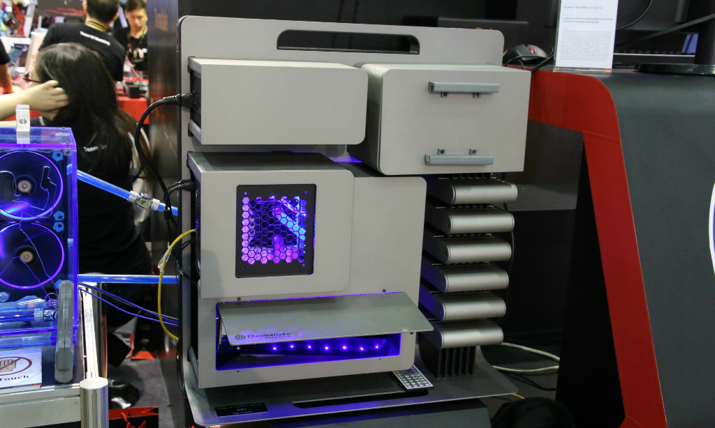 As we mentioned, Thermaltake had a lot to display, but to steal the show was their large case mods, and when we say large that is no understatement. Everything from two Core X9’s stacked to a slick-looking Thermaltake Level 10!