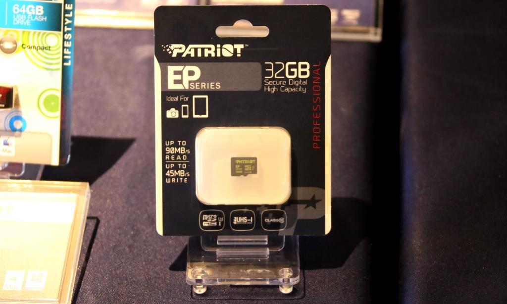 The next product merited a bit of a demonstration first, as can be seen here with the Samsung Galaxy now capable of 4K photos as seen here. This is only possible with high performance SD cards as shown with the patriot EP below, capable of speeds of 90MB/s read and 45MB/s write. Trying this same Galaxy demo with a standard SD card will not even display the ability to shoot 4K media.