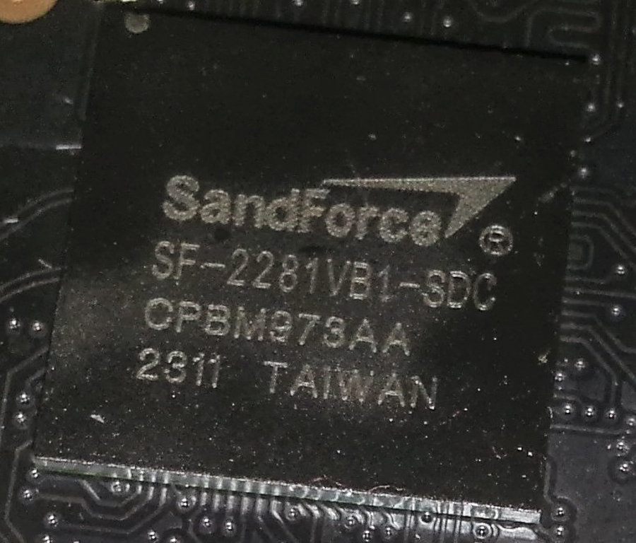 Zooming in we see that the specific SandForce FPU is the SF-2281VB1-SDC model, which can be configured anywhere between 12GB to 512MB MLC/SLC NAND memory, and more importantly supports SATA 3.0 (6Gb/s – 8 channel) with 20,000 sustained IOPS.