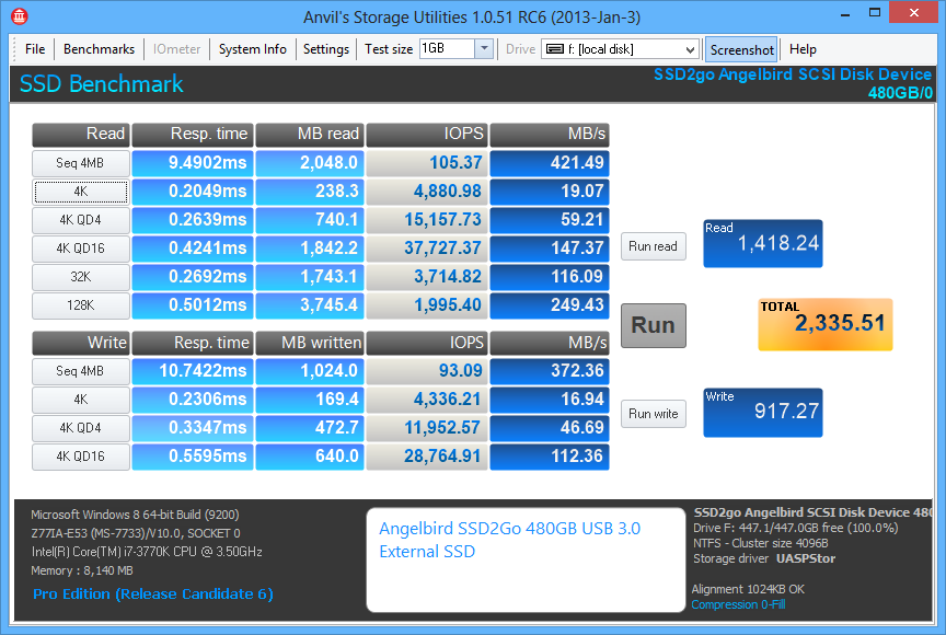 Anvil Storage Utilities is a powerful tool that is designed in to provide a simple means of assessing the read and write performance of a solid state drive.