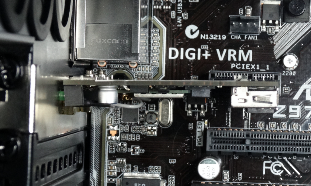 Next are the four rubber orange cable management pass throughs. These are pretty sweet not only helping you route cables but how each section is divided allows you to even separate cables individually. Also, here you can notice the seven PCI expansion slots, but the Base 600 has made them removable by thumbscrews that you must undo from the interior. One issue we ran into was when we installed our WiFi-Expansion, if you notice the photo below you’ll see it’s pushed on a slight angle, not a major flaw but we would prefer it being level and not having to strain the expansion to make it fit.