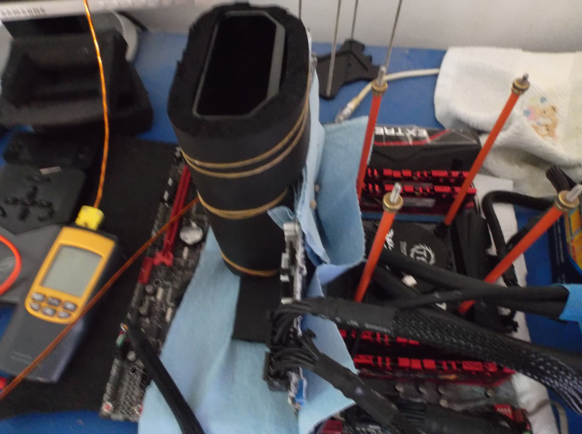 The Tek-9 Fat mounted on a graphics card with insulation.