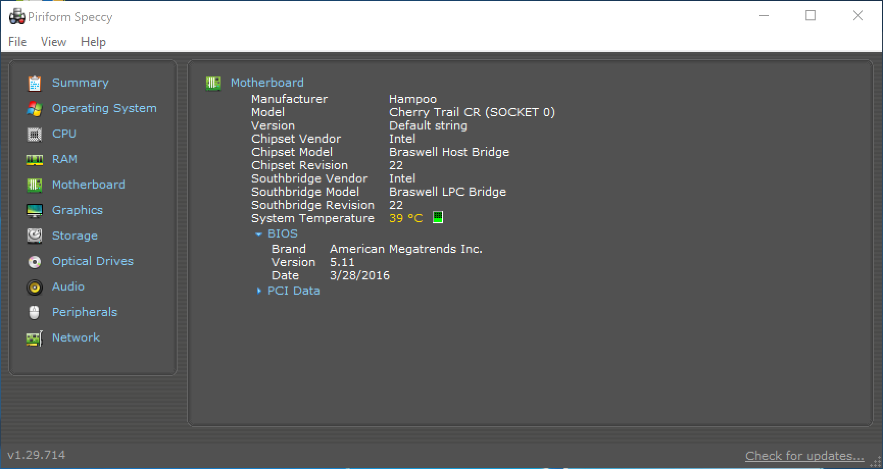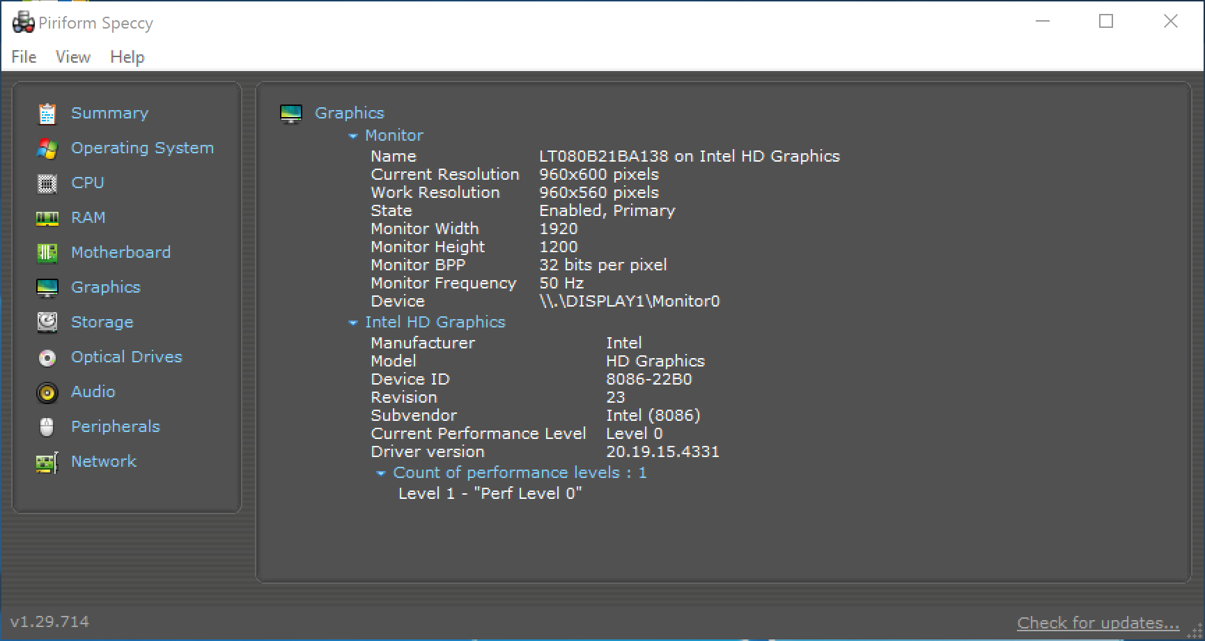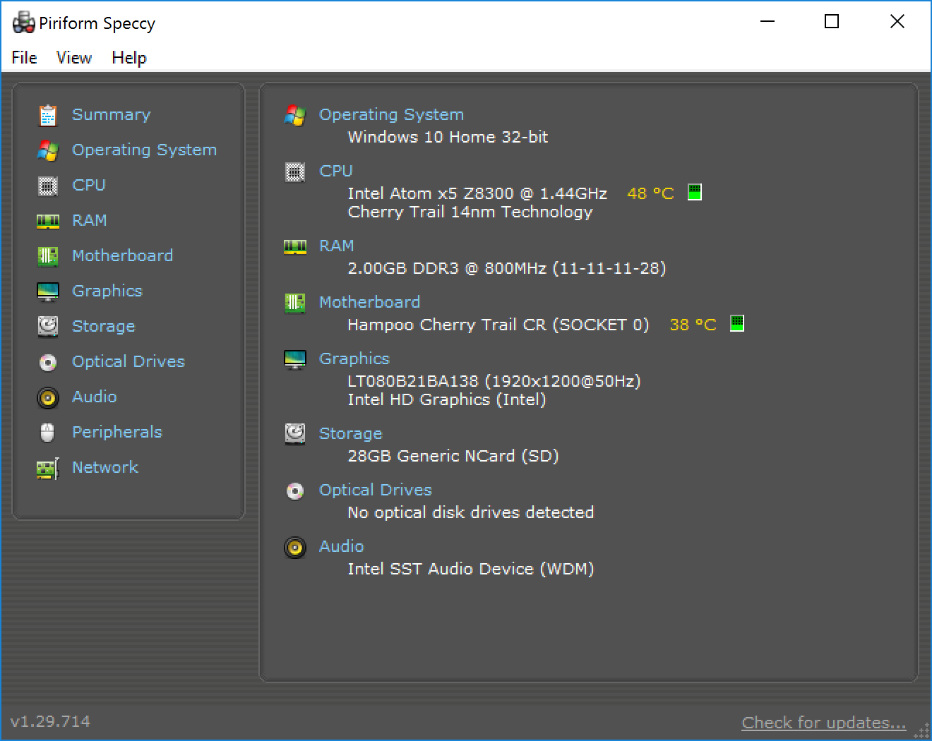 Piriform Speccy is a great tool for checking the status and health of your computer system. It provides you with brief summary, or a detailed look, at your operating system, CPU, RAM, motherboard, graphics, storage, optical drives, audio, peripherals and network.
