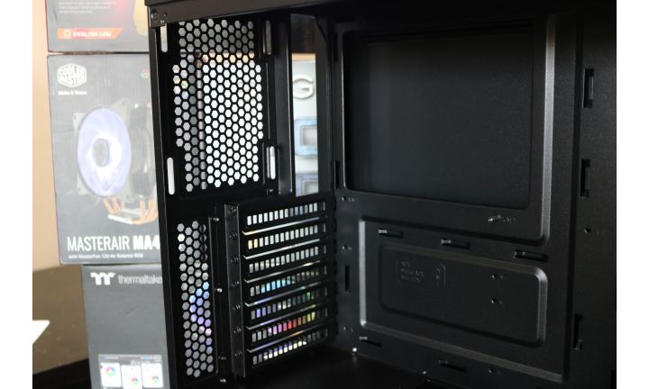 Directly above the motherboard slot we see the dual 120 mm area which we will more than likely use for the two included RGB fans in an exhaust setup.