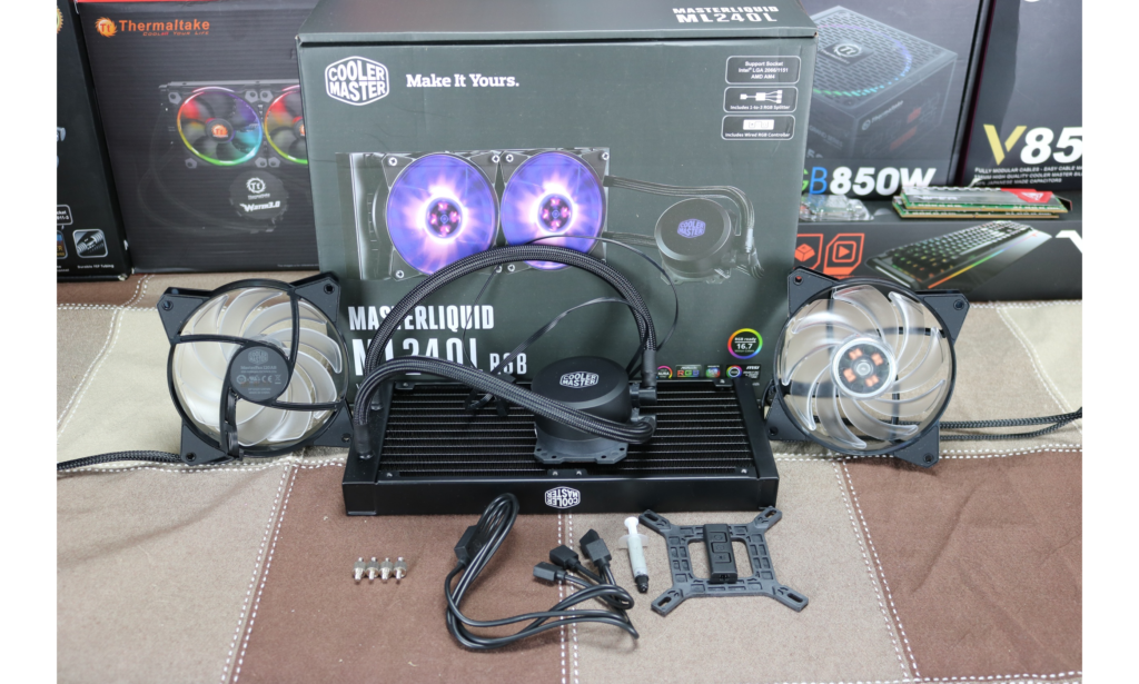 Our ML240L came packaged in standard AIO style with a nice looking black Cooler Master box.