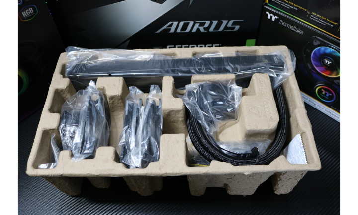 With all the RGB here we run into one snag. An abundance of cables may provide us with a cable management nightmare. Cooler Master also includes their version of an RGB controller for the fans and pump RGB.