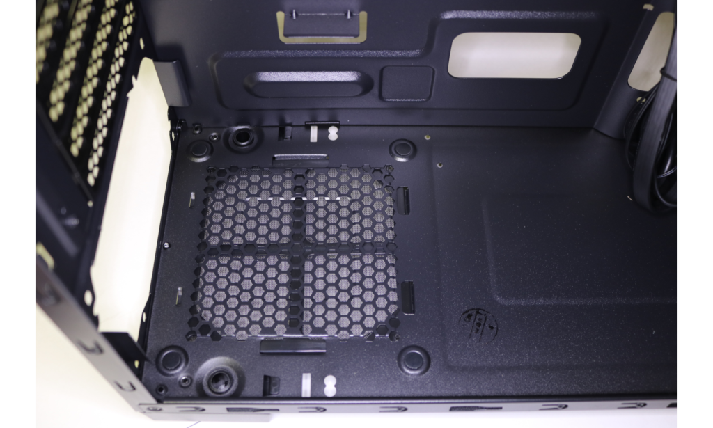 The answer is very simple. Located on the Spec-04’s cable management side is room for two 2.5 screw in bays. Attached on the inside of our chassis near the PSU slot is a 3 3.5” bay shelf. We do not really have a need for those bays and can see them being replaced to give more airspace.