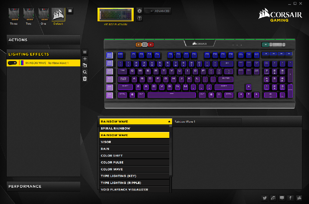 As you start to go down the left side you’ll see three tabs, Actions, Lighting Effects, and Performance.