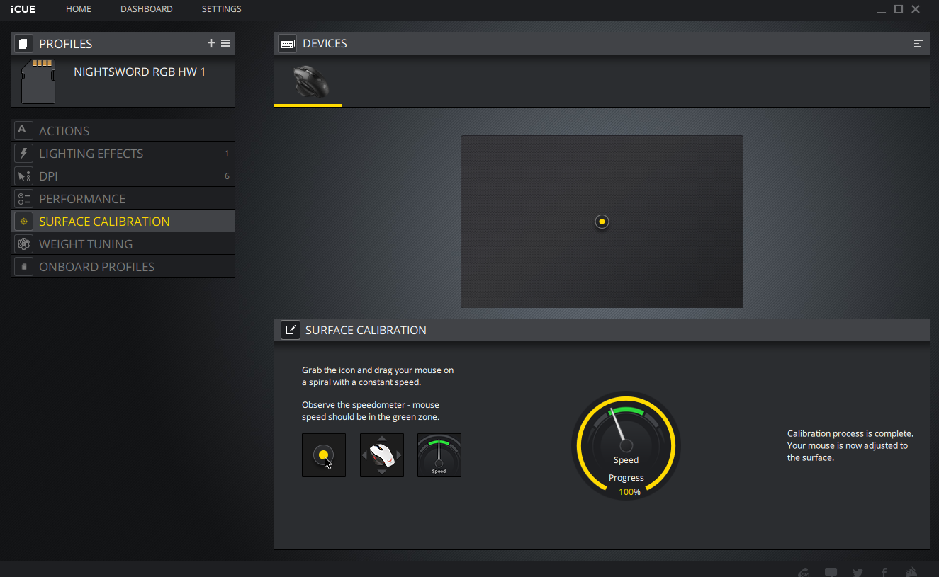 Surface Calibration allows you to calibrate your mouse to whatever surface you’re using. Quick and simple and you have more confidence in you work/gaming space, especially if you’re on the go, taking advantage of the onboard memory profiles.