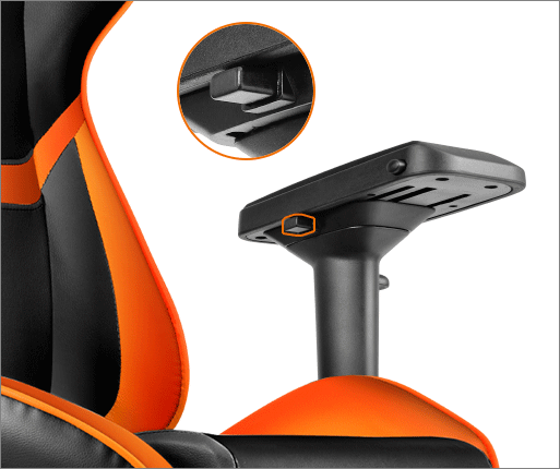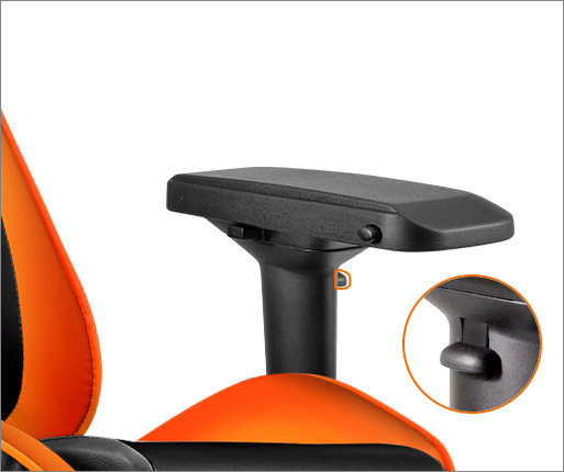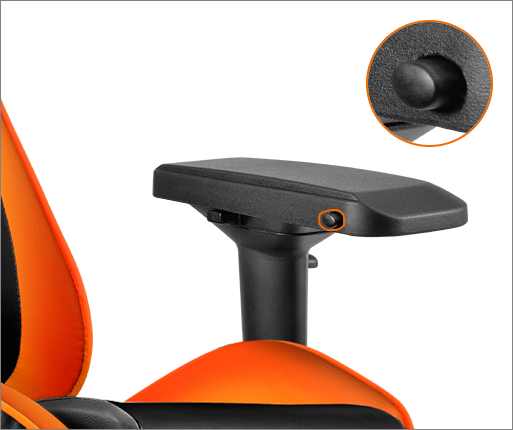 On the outside of each arm rest is a tab to adjust the height of the armrests as well. With the final adjustable feature for the arm rest being the tilt feature. All features are displayed below.
