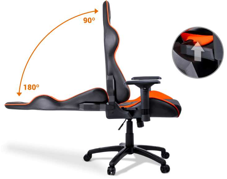 At the base of the chair there is also a lever on the right hand side which allows you to adjust the height. The final adjustment you can make on the Armor is the recline of the back which allows you up to 180 degrees to decline. YES! you can sleep in the chair to.