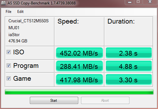 The Crucial M550 SSD produces some great speeds for ISO and game copying, but lower than expected performance for program copy.
